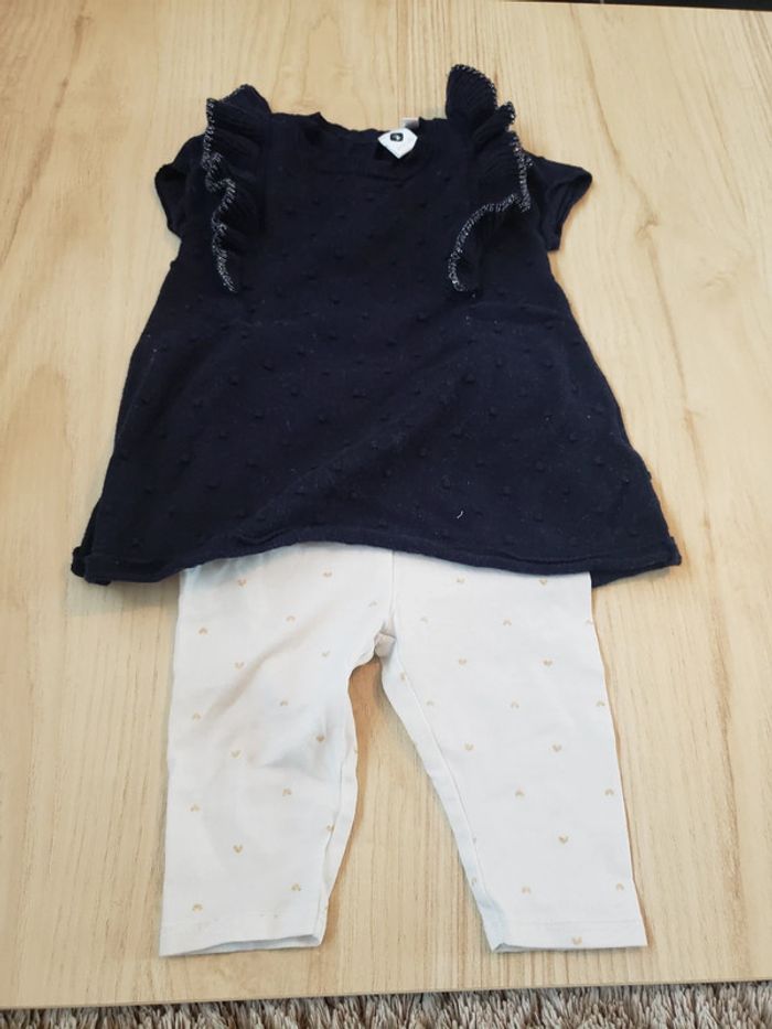 Lot robe en maille grain de blé et leggings vertbaudet Taille 3 mois (le leggings est indiqué 6mois mais taille petit) Très bon état