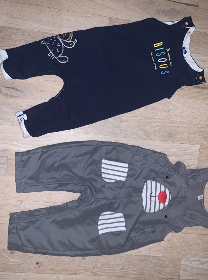 Salopette Taille 6 mois Jamais porté Salopette bleu Mot d’enfant Salopette grise Super U