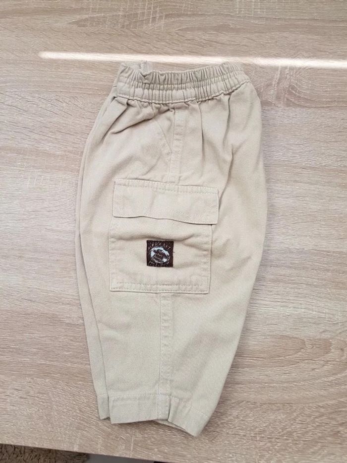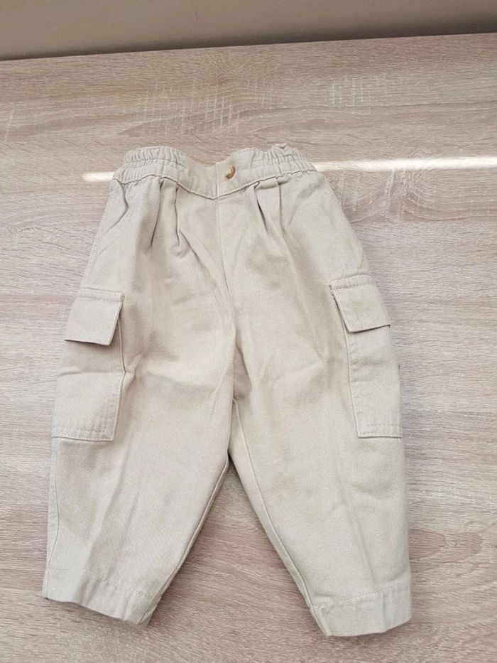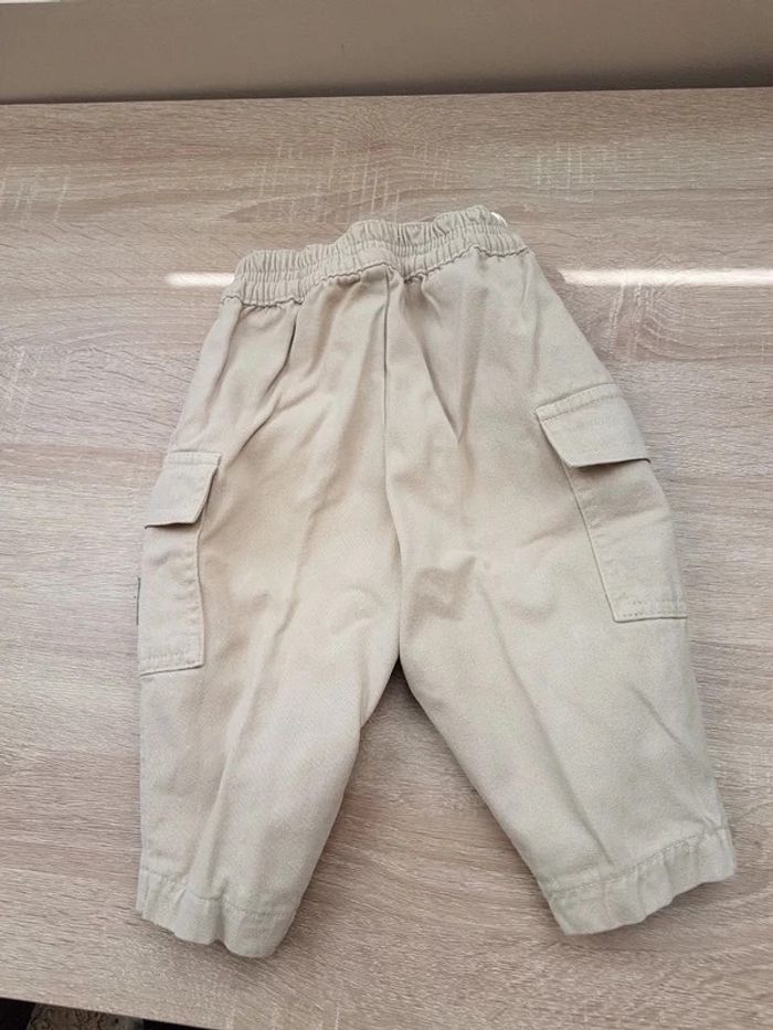 Pantalon en toile écru, 1 an, taille élastiquée, poches plaquées sur les côtés État comme neuf #Vêtement_BB_9/12mois