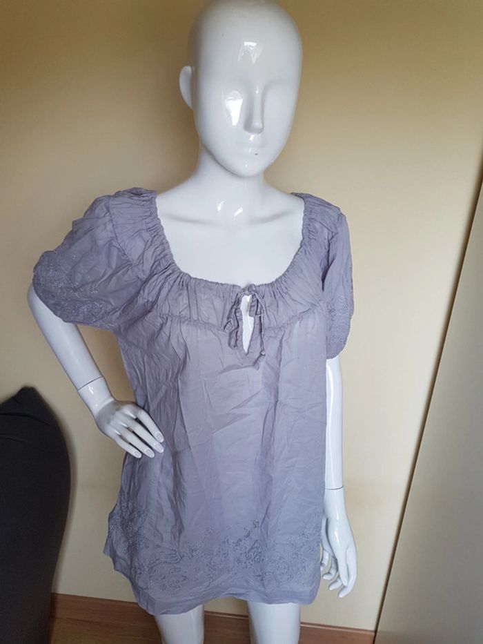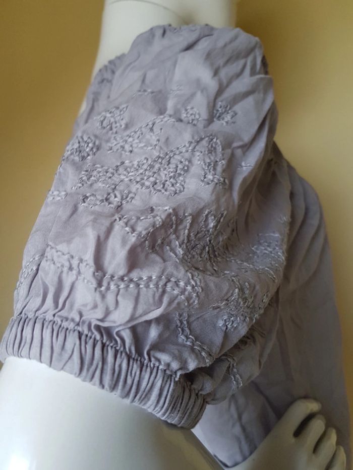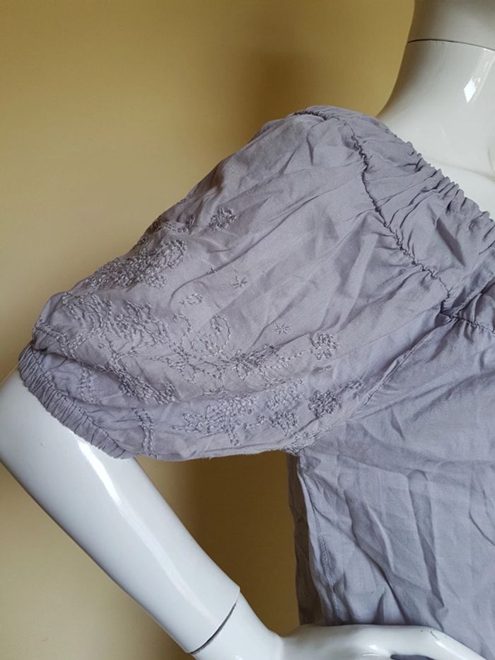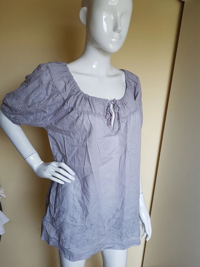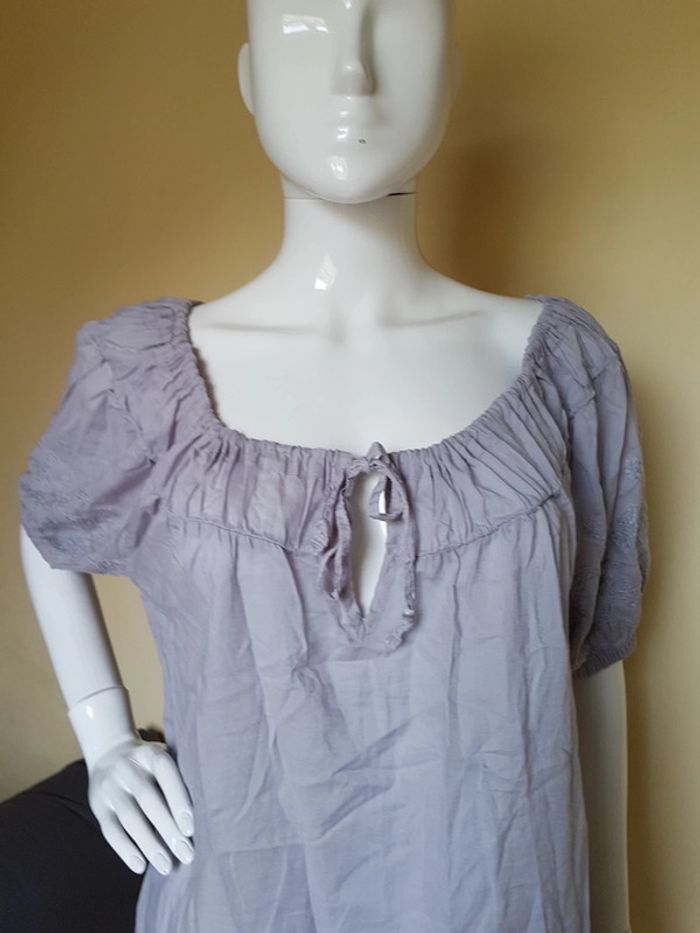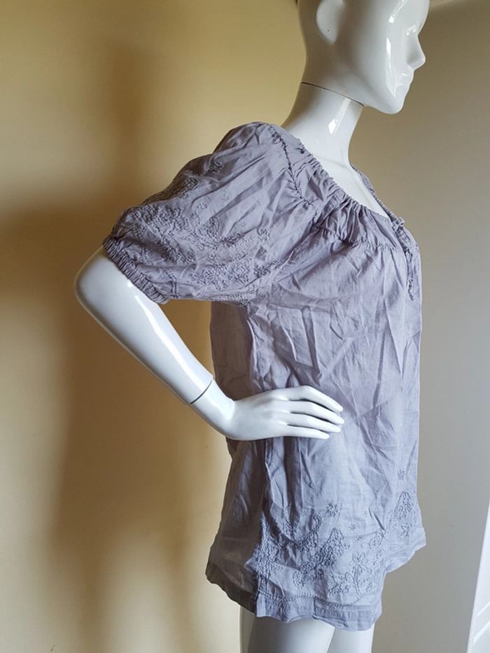 Chemisier Esprit gris clair, lien de serrage au niveau du décolleté, jolies broderies Très Bon État Taille 42 #Top_Tshirt_Blouses_femme_ophelie2900