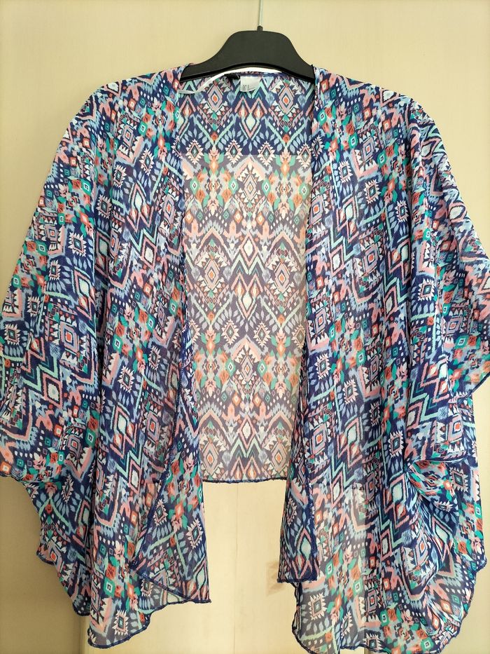 Kimono multicolore manches 3/4 100% polyester peu porté taille S