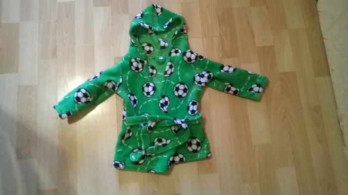 Peignoir a capuche doux et chaud 9-12 mois Motif ballons de foot