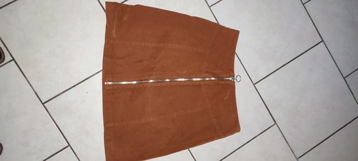 Jupe trapèze effet daim avec fermeture au milieu couleur Camel