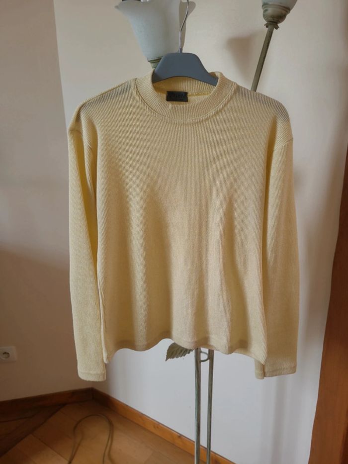 ⬇️mes autres annonces pour femme en taille 42 👉 #cg89femme42 😁 réductions activées des 2 articles ! un pull léger avec un petit col, il est de couleur jaune poussin, il mesure 54 cm de longueur, 48 cm aux aisselles et 42 cm aux épaules. très bon état, marque Printe, taille 42 #pull #tshirt #taille42 #printe
