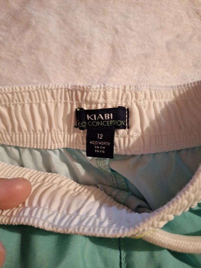 Maillot short avec lien à la taille pour le serrage Parfait pour la plage ou la piscine Taille 12 mois Marque Kiabi Couleur vert et blanc Summer surf club beach Neuf jamais porté #12mois #12moisgarcon #garcon12mois