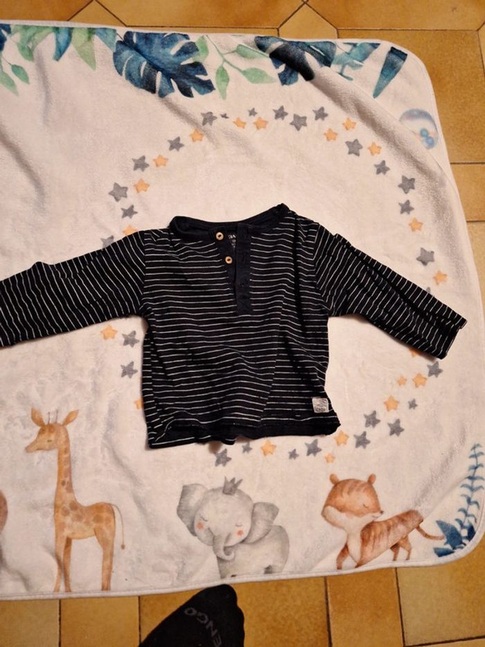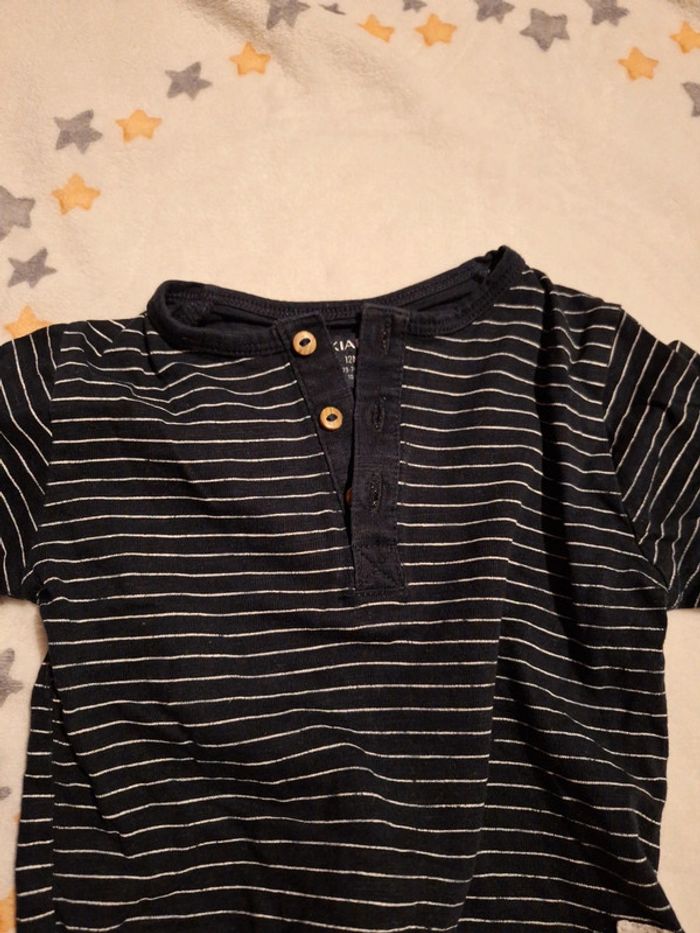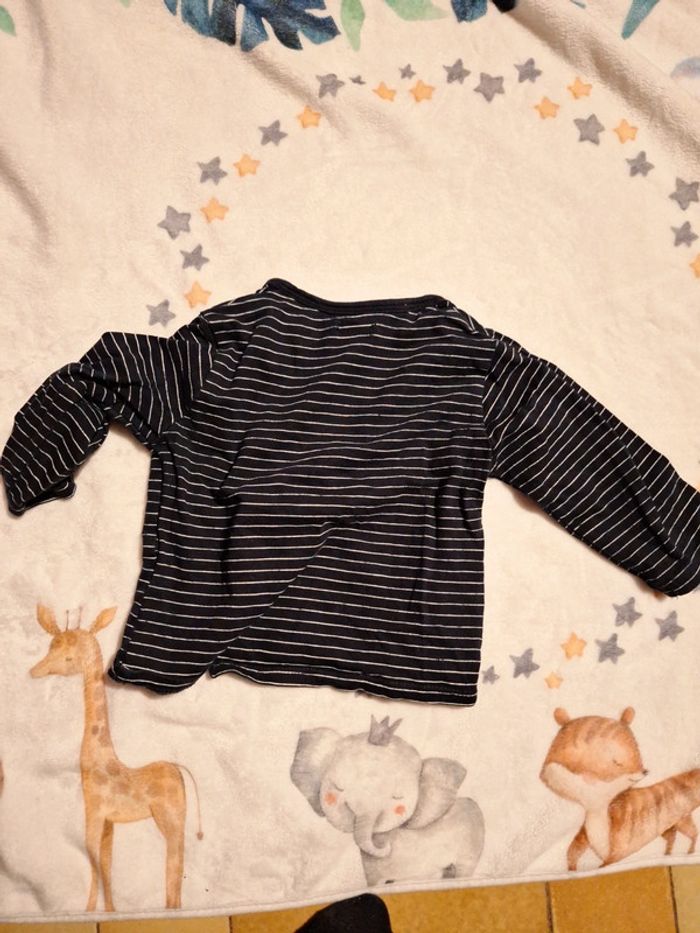 Tee-shirt rayé manches longues Marque Kiabi Taille 12 mois Couleur bleu marine et blanc Message mini chou Très bon état #12mois #12moisgarcon #garcon12mois