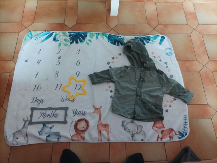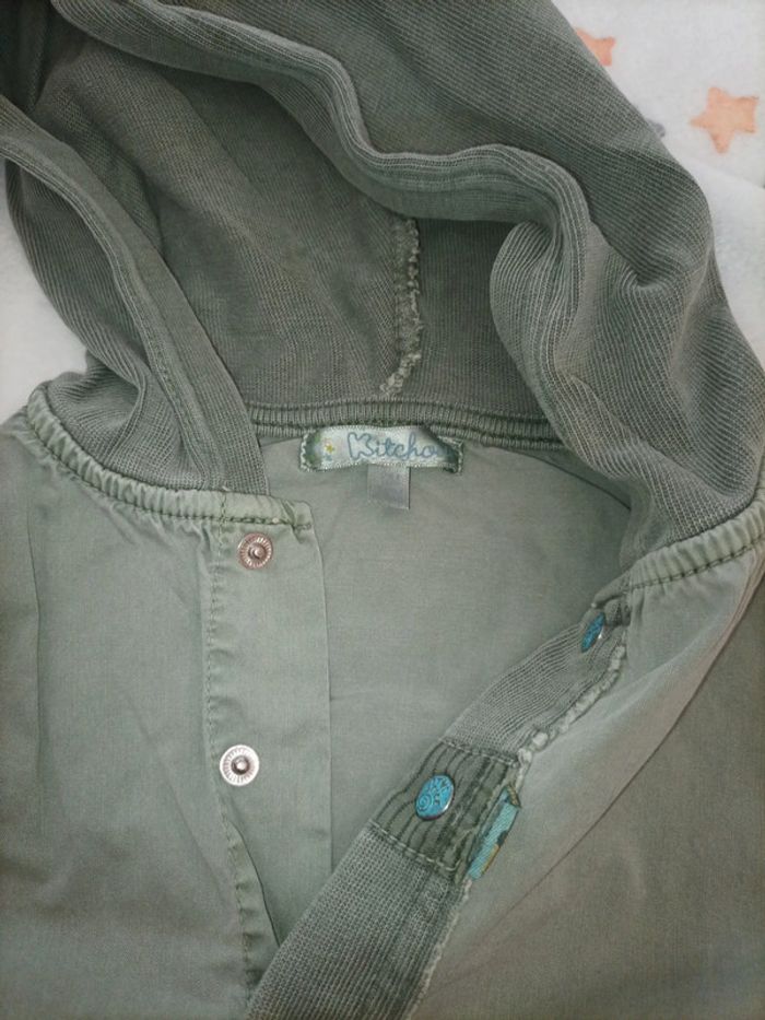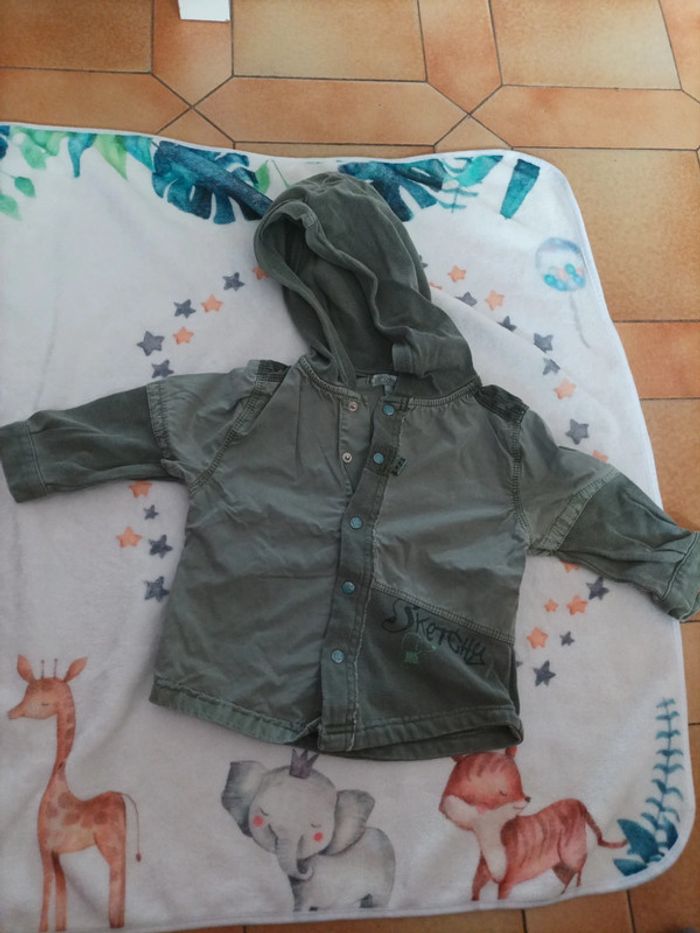 Chemise / veste en coton à capuche Marque Kitchoun Taille 12 mois Couleur kaki Sketchy mini style Très bon état très peu porté #12mois #12moisgarcon #garcon12mois