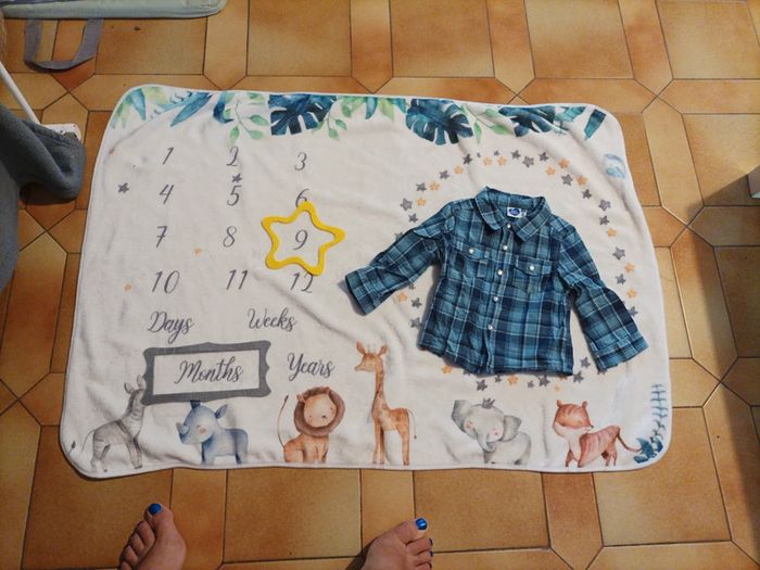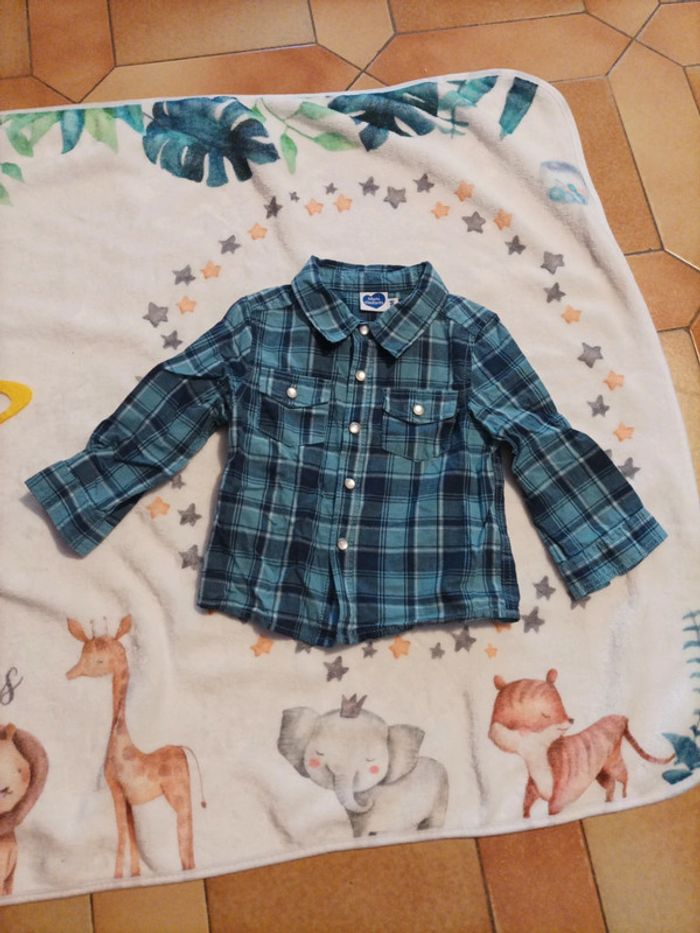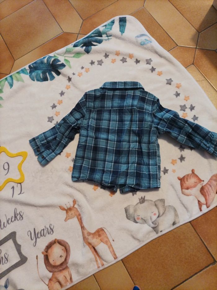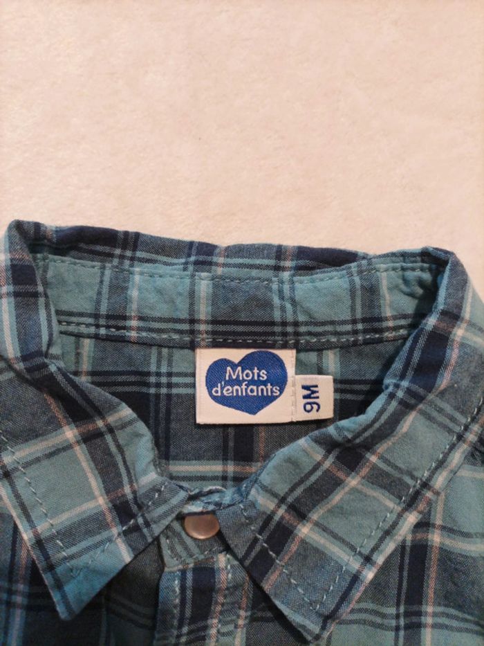 Chemise à carreaux manches longues Marque Mots d'enfants Taille 9 mois Couleur carreaux bleu Très Bon état #9mois #9moisgarcon #garcon9mois
