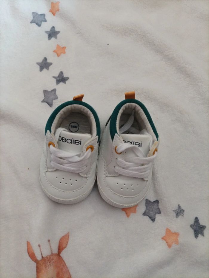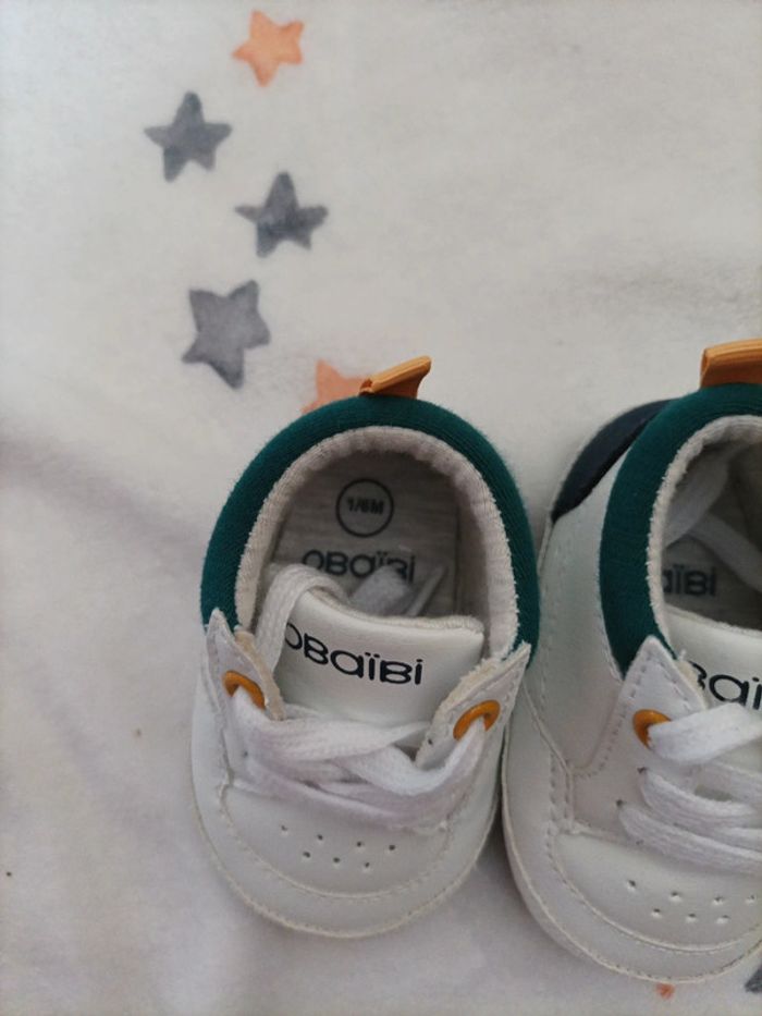 Chaussures blanche bébé Marque Obaïbi Taille 1 - 6 mois Portées 1 fois neuves Très facile à enfiler