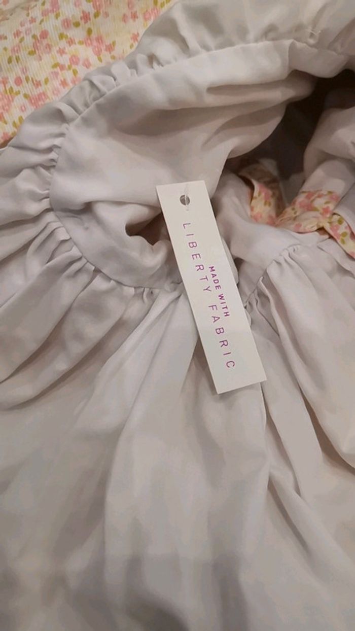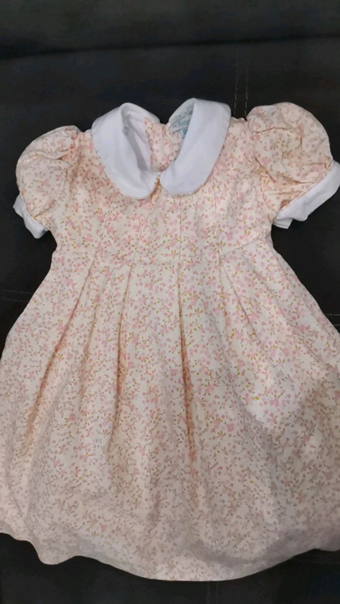 Robe de cérémonie neuve, liberty, avec son col claudine blanc, son jupon bouffant pour créer plus de volume sur le bas de la robe, taille 9 mois