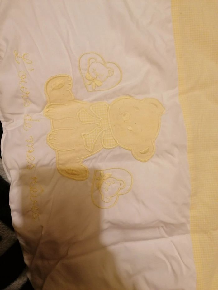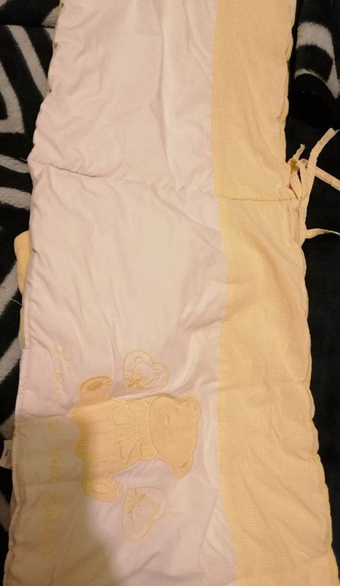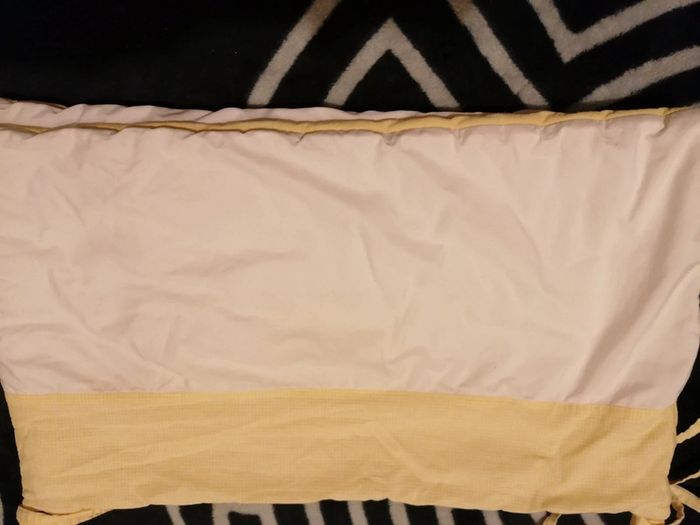 Vend tour de lit occasion jaune blanc 1m 65 longueur largeur 32 cm