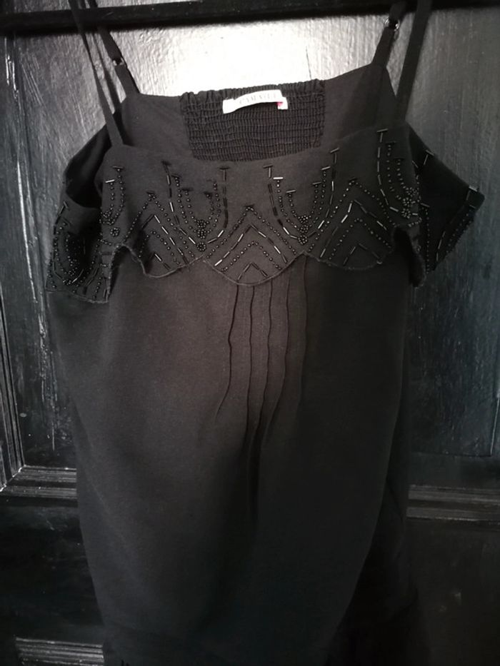 Vend robe noir bretelles taille 36 avec jupon en dessous