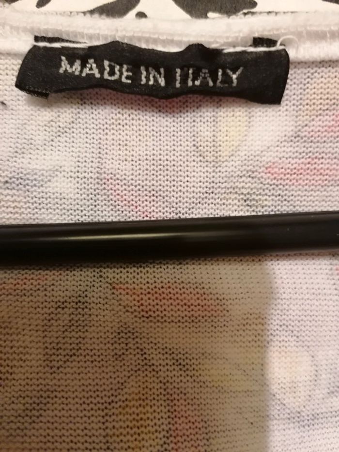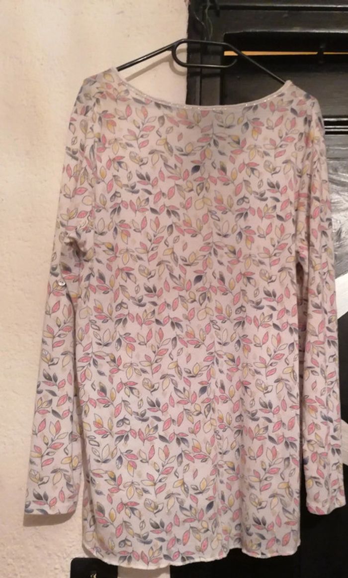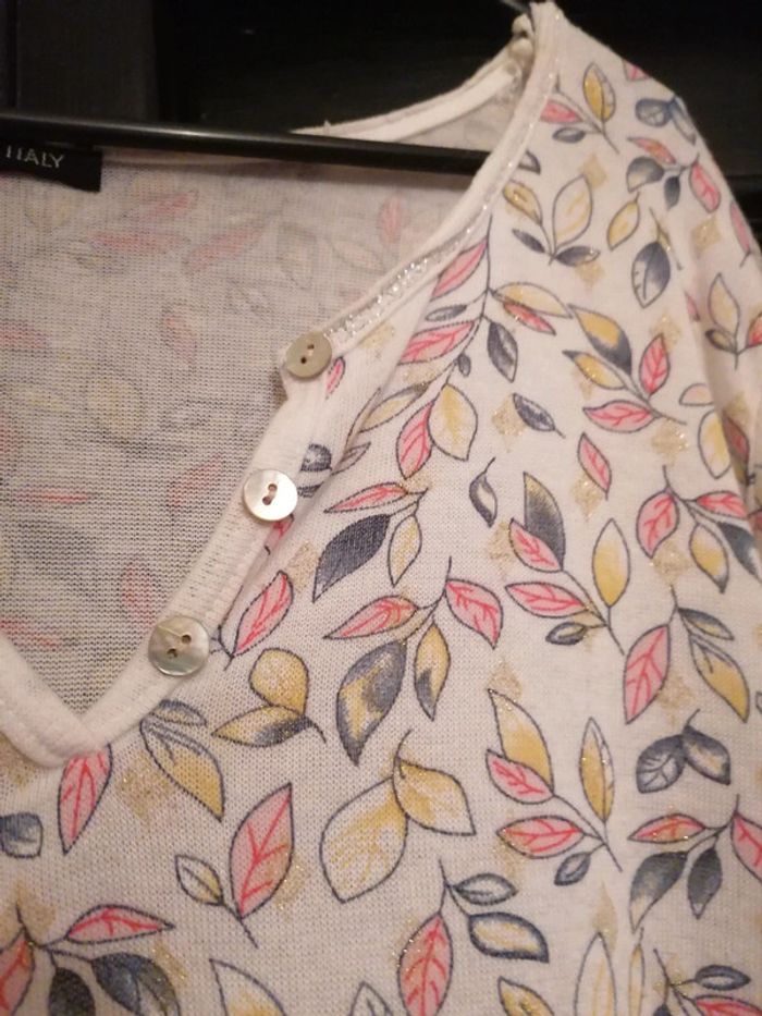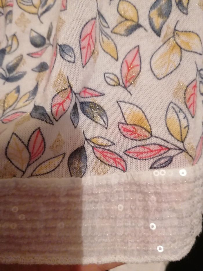 Vend pull avec longue manche taille 44 peu aller a 46 blanc. 35%viscose 65%polyester