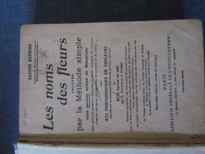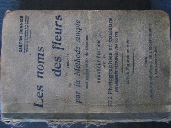 (1178) Livre "Les Noms des fleurs" par Gaston Bonnier Trouvés par la méthode simple Nouvelle édition Une page déchirée et tâché au milieu Vendu dans l'état, merci de regarder les photos, car vous achetez ce que vous voyez. N'hésitez pas à me demander d'autres photos que je n'aurais pas pu mettre dans l'annonce Mes prix ne sont pas fixes, merci de faire une offre dans la mesure du raisonnable. Mes objets sont en vente sur d’autres sites. Pensez à regarder mes autres annonces, vous y trouverez sûrement votre bonheur