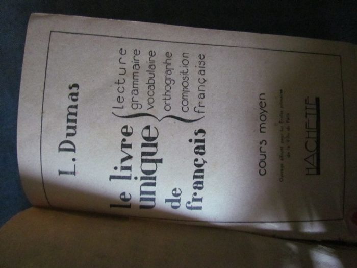 (1184) livre "Le livre unique de Français" par L. Dumas de 1931 Cours Moyen Edition Hachette Vendu dans l'état, merci de regarder les photos, car vous achetez ce que vous voyez. N'hésitez pas à me demander d'autres photos que je n'aurais pas pu mettre dans l'annonce Mes prix ne sont pas fixes, merci de faire une offre dans la mesure du raisonnable. Mes objets sont en vente sur d’autres sites. Pensez à regarder mes autres annonces, vous y trouverez sûrement votre bonheur