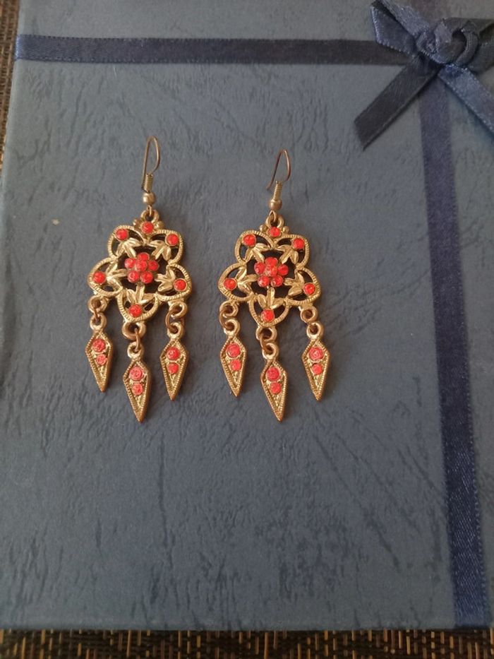 Boucle d'oreille fantaisie couleur rouge et argenté bijou fantaisie avec beaucoup de roches rouge Idéal  pour travailler ou sortir ! Idéal cadeau fêtes de fin d'année = je peux le mettre dans une boîte et faire un paquet. 💗😜 Très peu portée...🙃 Produit bien fini    😃 🌴 Excellent état aucune tâche nul part et aucune marque d'usure. Parfait état🌴 Peut très bien allé avec le déguisement oriental que j'ai dans mon dressing... 💌🖐👉VISITEZ MON DRESSING 😁😛🥳 Garde robe 🧚‍♂️🧚‍♀️complète a vendre 4 Ans  🧞‍♂️🧞‍♀️= Automne⛅⛈🌧☔ hiver❄☃️ 36 et 24 mois mais aussi encore du printemps🍃🌿🌱🍀 et de l'été...🌞🌤☀️🌡🌈 de bébé à 4 ans ! ☯️💮BEAUCOUP DE VÊTEMENTS FEMME ARMAND THIERRY DU 40 AU 46 (TAILLE 2 À 6) ☯️💮 Dans mon dressing n'hésitez pas a y faire un petit tour... ⛔Envoi soigné Beaucoup de marques du 06 au 4 ANS⛔ du XS au 44        ⚠️#⚠️ #armandthierytaille3 #armandthieryfemmetaille3 #ensemblefemme #collierethniquefemme #bijouethniquefemme #hippie #bijouhippie #bijouvintage #bijoupeace #bijouxfantaisie #bijoumarron #bijouxmarron #bijouxafricain #bijouxdesiles #fetesdefindannée #fetes #fêtedenoël #fêtesdefindannée #cadeaudenoel #cadeaufemme #cadeau #cadeaux #cadeauanniversaire #bijoucadeau #bijoucadeaufemme #femmeL #femmeS #femmeXS #femmeM #oriental #bouclesdoreilles #bouclesdoreillespendantes #bouclesdoreillesfantaisie #bouclesdoreillesorientales