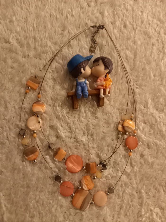 Collier couleur corail style multiple Armand Thiery