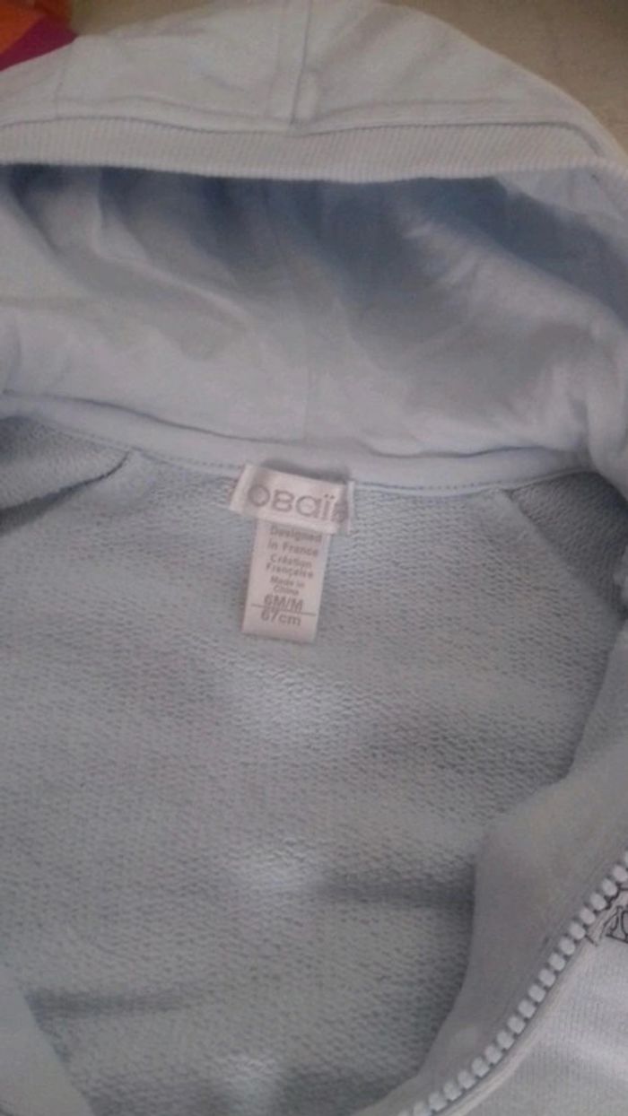 Sweat. Gilet. Zippé bleu ciel Obaibi 6 mois idéal 🪴 printemps  neuf - photo numéro 3