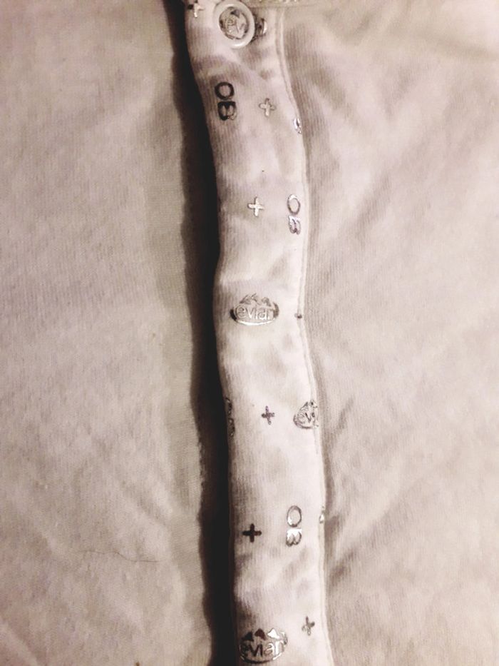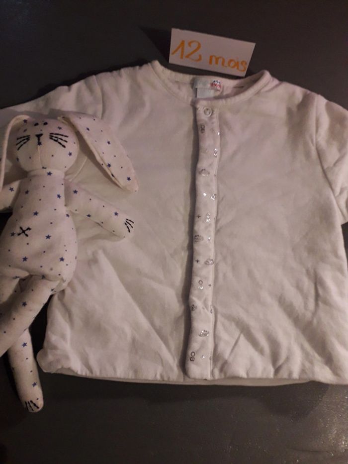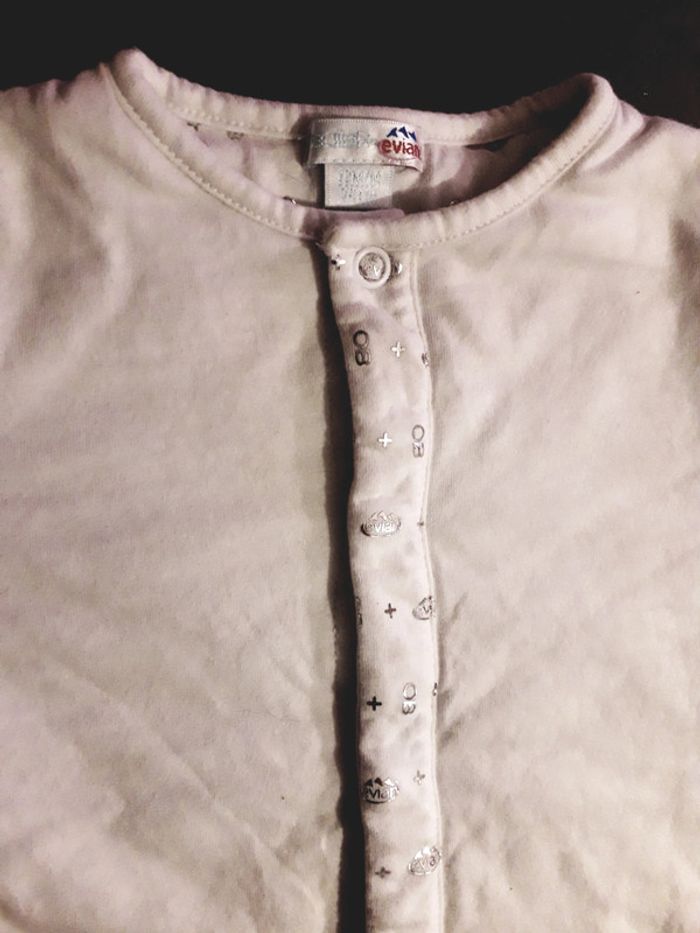 Vends veste coton doublée col rond avec petites pressions Evian logo argenté trop trop mignon Bb mixte totalement Très bon état  Couleurs blanc. Et argenté. #obaibi #12mois #12moismixte #bébé #chaud
