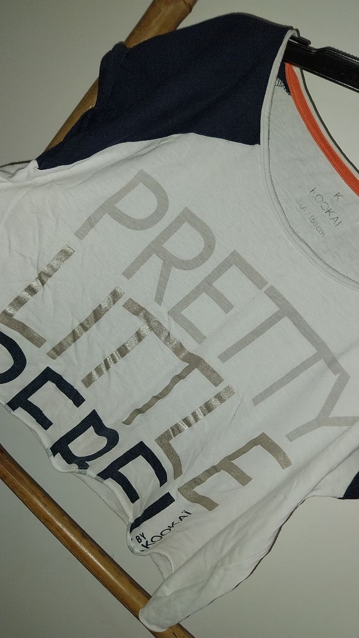 Tshirt court / croptop Taille 14 ans By Kookai Tres bon état Manches courtes Bicolore blanc et bleu marine Message imprimé "Pretty Little Rebel" 100% coton Petit prix et cutie #tshirtmanchescourtes #tshirtfille #tshirtfille14ans #fille #14ans #fille14ans #bicolore #kookai #tshirtcourt #croptop #manchescourtes #printemps #été #croptop14ans #croptopkookai #adofille #dressingadofille #dressingadofille14ans #printempsété #dressingfille14ans #sojufille #sojufille14ans #sojufilletop #sojufilletop14ans #sojufilletshirt #sojufilletshirt14ans Envoi rapide suivi et soigné assuré