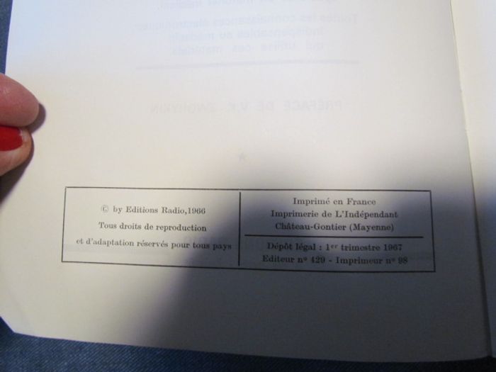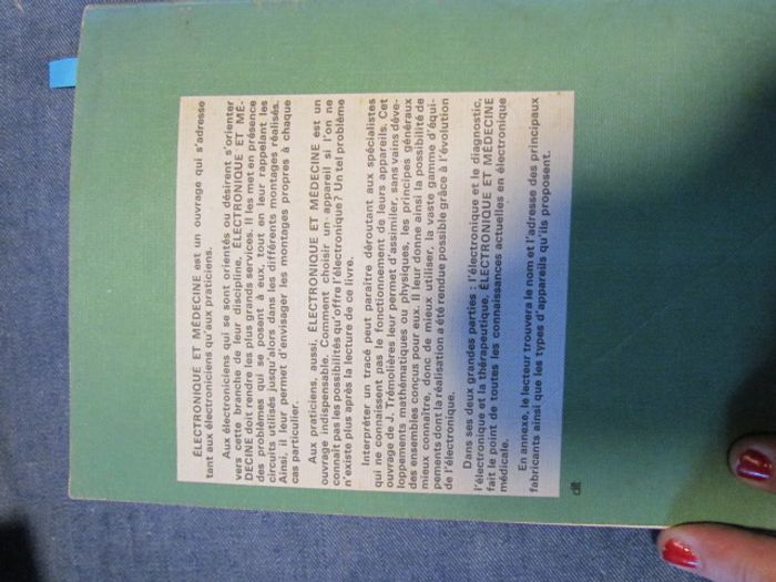 (1190) Livre "électronique et médecine" par J. Trémolières de 1967 Editions radio Coins cornés et frottés Vendu dans l'état, merci de regarder les photos, car vous achetez ce que vous voyez. N'hésitez pas à me demander d'autres photos que je n'aurais pas pu mettre dans l'annonce Mes prix ne sont pas fixes, merci de faire une offre dans la mesure du raisonnable. Mes objets sont en vente sur d’autres sites. Pensez à regarder mes autres annonces, vous y trouverez sûrement votre bonheur