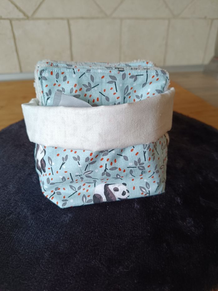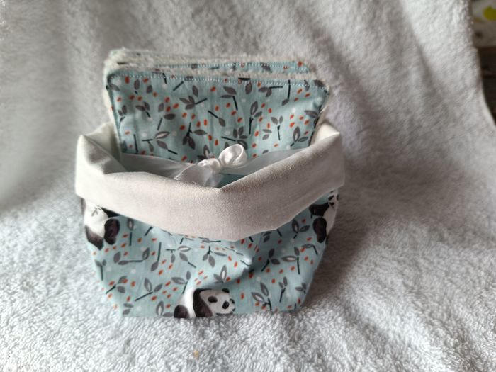 Lingettes panda réutilisables  et leur panière. - photo numéro 1