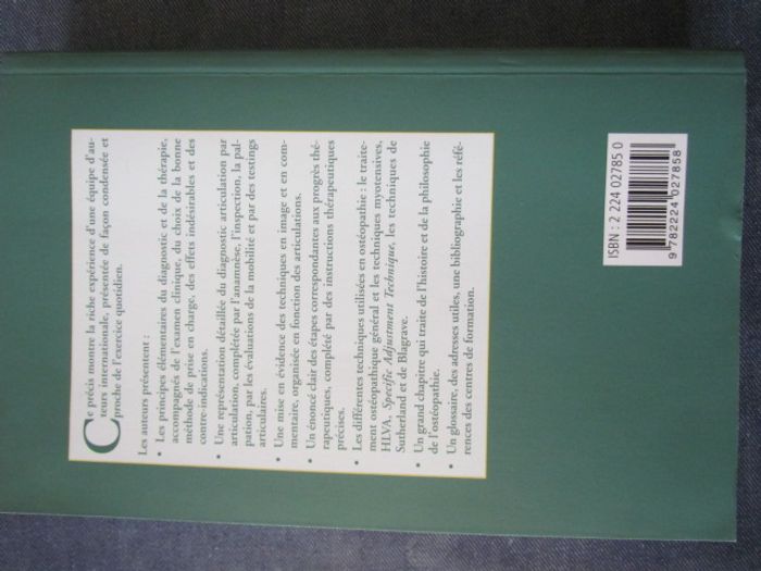(1195) Livre "Guide d'ostéopathie" techniques pariétales par T. Liem et T.K. Dobler de 2004 Editions Malone ISBN: 2224027850 Vendu dans l'état, merci de regarder les photos, car vous achetez ce que vous voyez. N'hésitez pas à me demander d'autres photos que je n'aurais pas pu mettre dans l'annonce Mes prix ne sont pas fixes, merci de faire une offre dans la mesure du raisonnable. Mes objets sont en vente sur d’autres sites. Pensez à regarder mes autres annonces, vous y trouverez sûrement votre bonheur