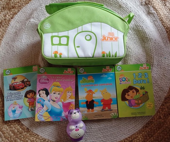 Lot de 4 livres avec figurine interactive et pochette de transport L'enfant apprend en passant la figurine sur les pages des livres #leapfrog