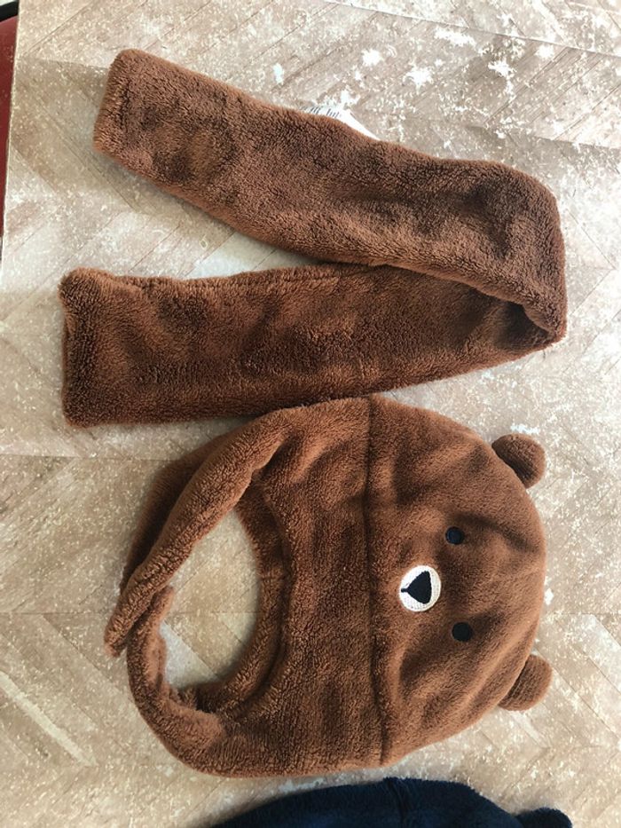 Ensemble bonnet et écharpe bebe marron, Ensemble bonnet et écharpe bebe bleu 6-18mois. Bonnet porter quelque fois , écharpe jamais porté.