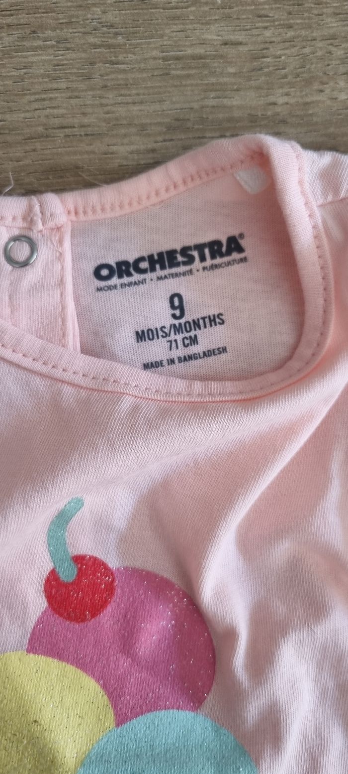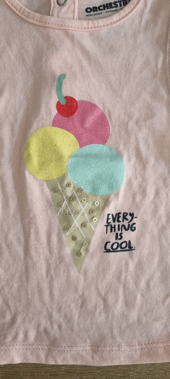 T-shirt à manches courtes à motif cornet de glace pailleté et en sequins Orchestra taille 9 mois Très bon état