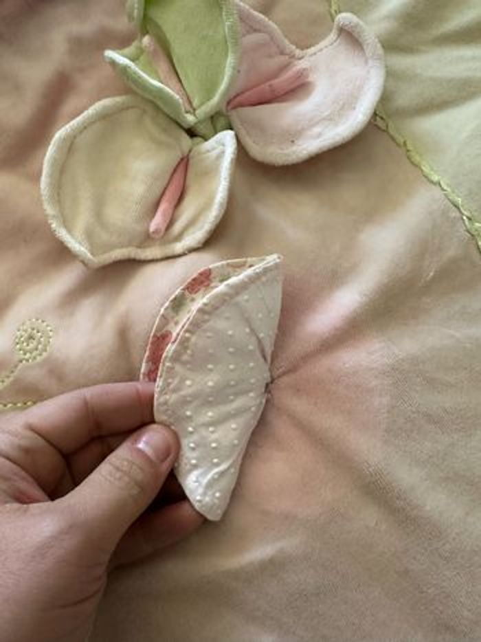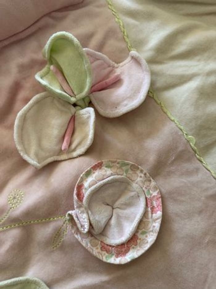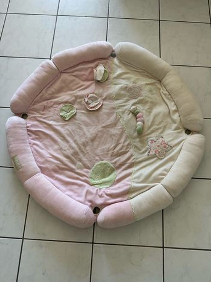 Tapis d’activité / d’éveil au sol bébé tout doux (velours) nourrisson Kaloo Diamètre zone intérieure 73 cm Diamètre total (avec rebord boudin) 90 cm Je précise que nous ne sommes pas fumeurs donc pas d’odeur de tabac dans les tissus 😊