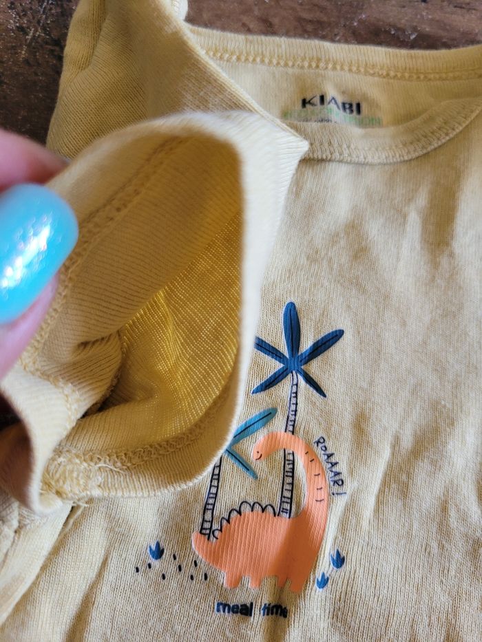 Petit bodie Manche longue Couleur jaune Dessin dinosaure Taille 18 mois Mi saison Voir tous saison Matière 100% coton