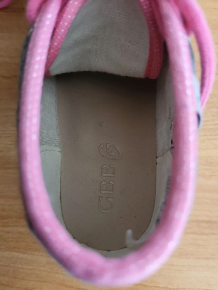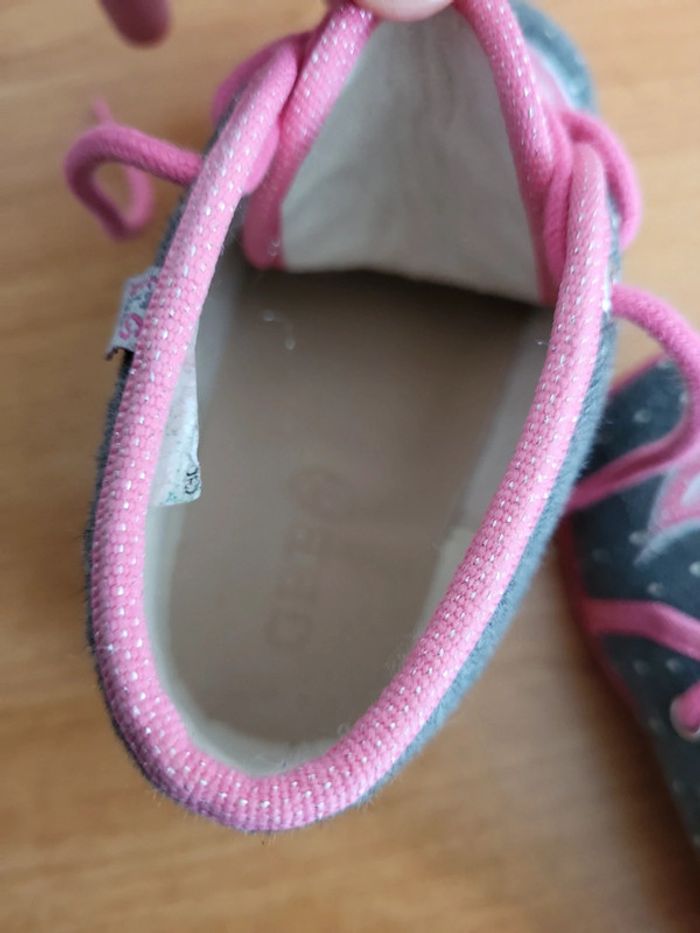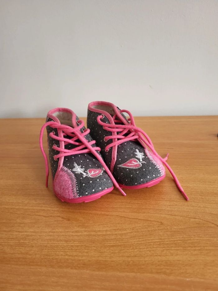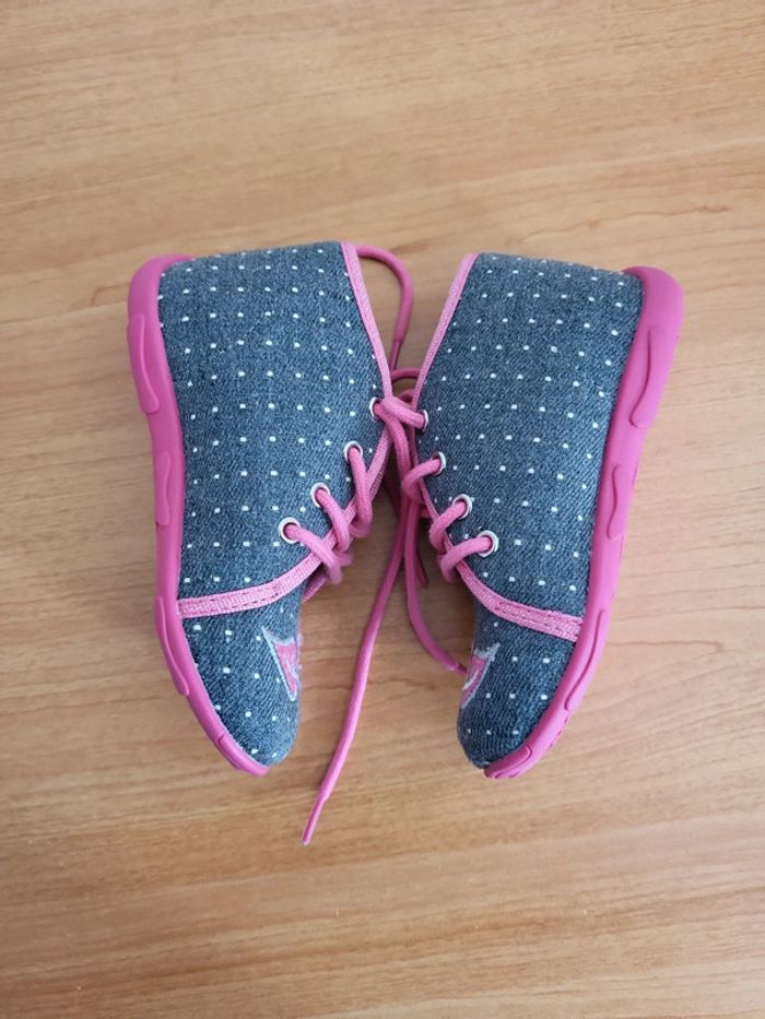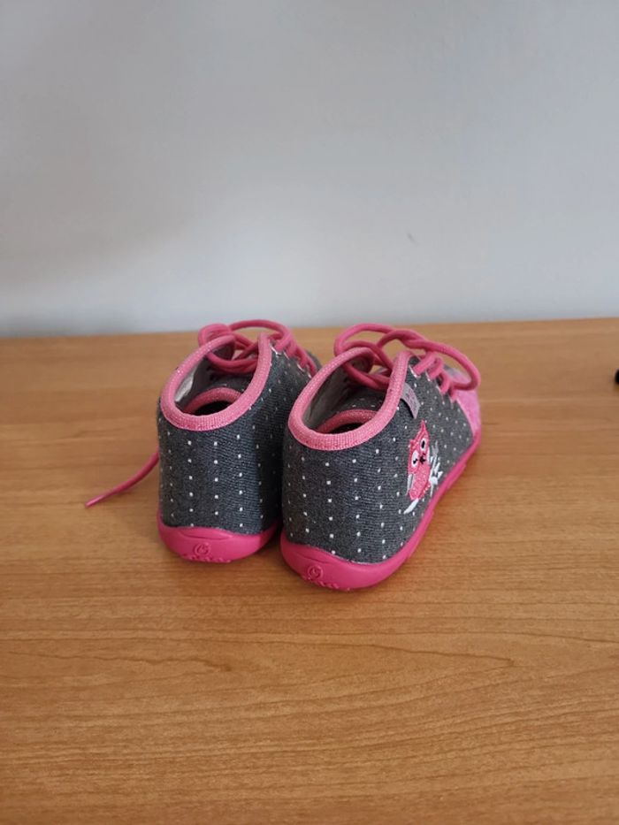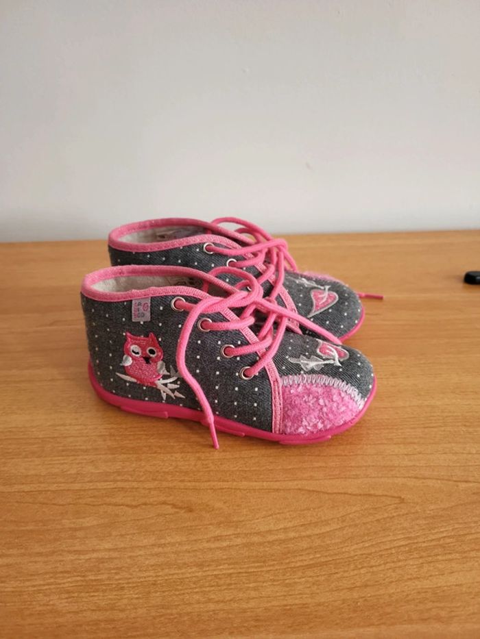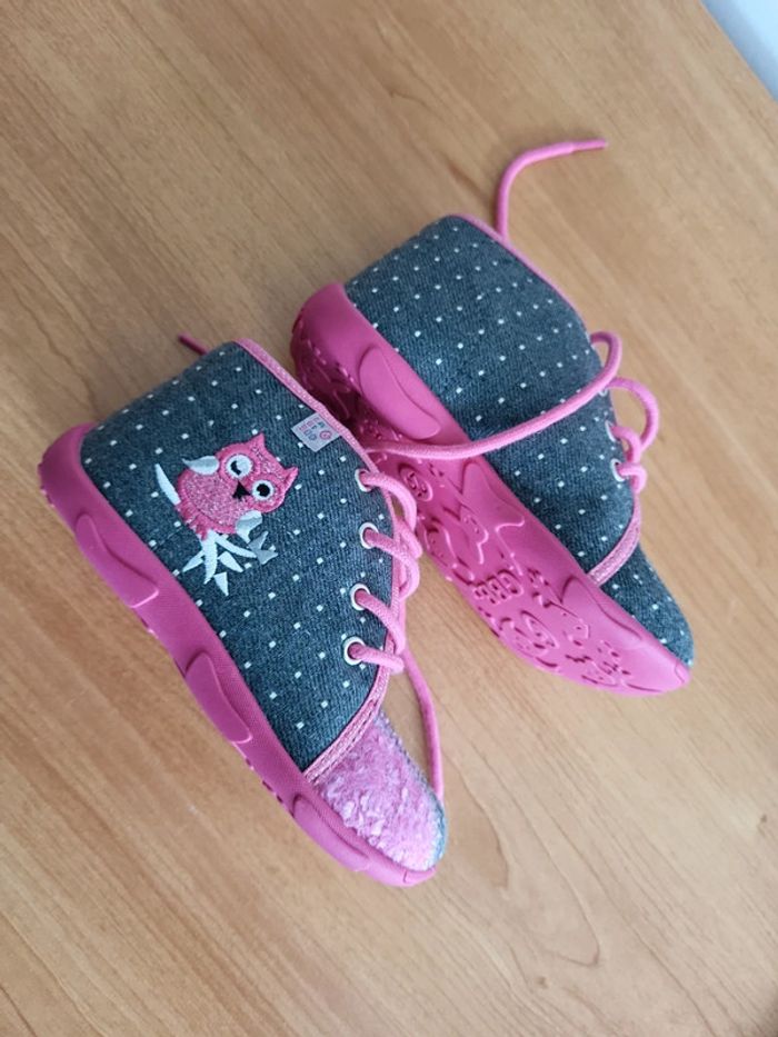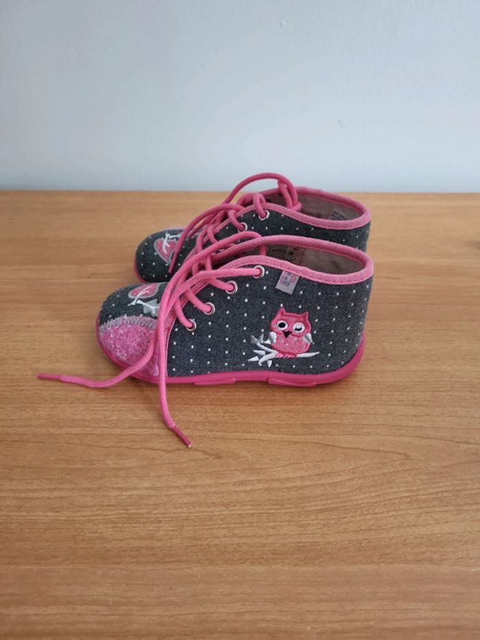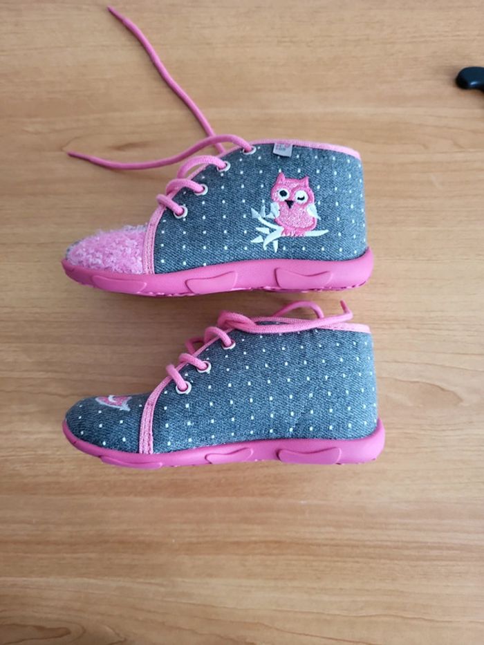 Neuves Taille 25 A lacets Semelles anti dérapante Motif Chouette Couleur grise et rose Achetées 65e