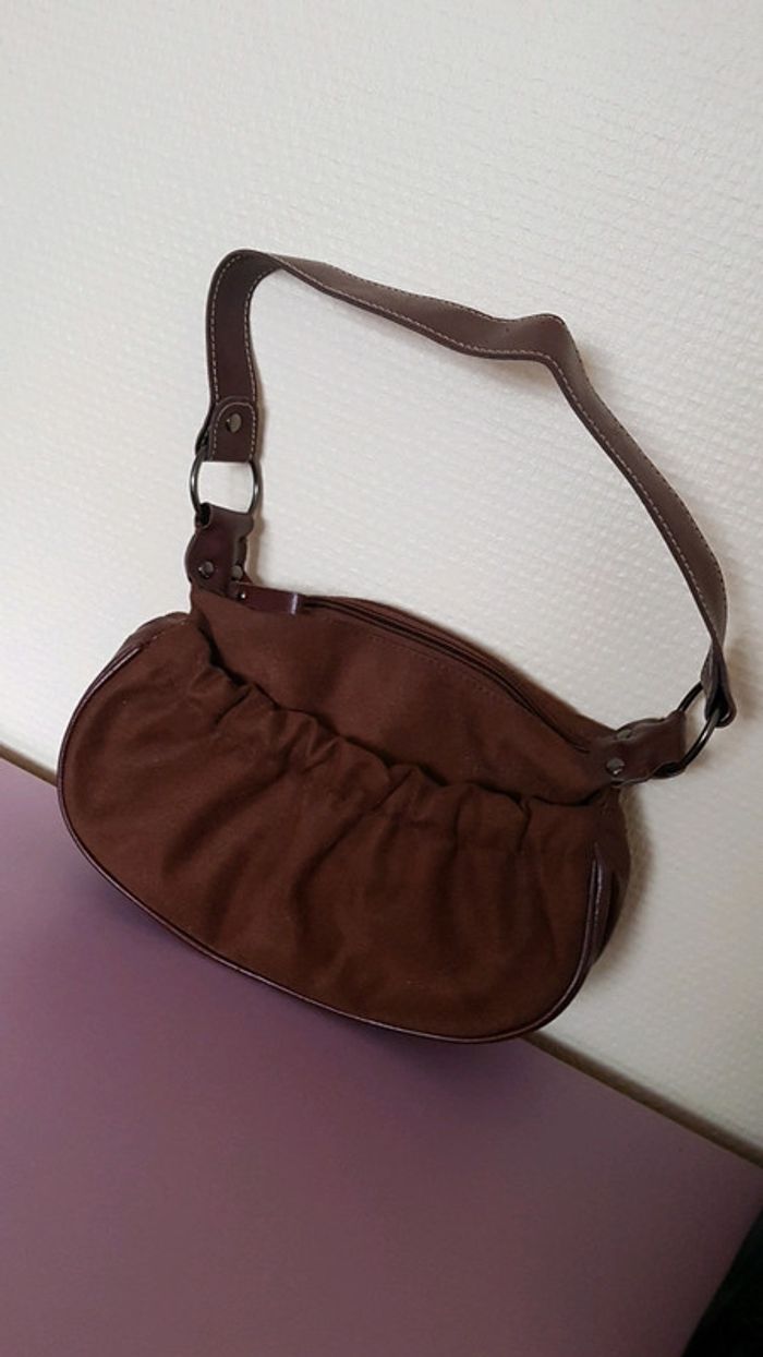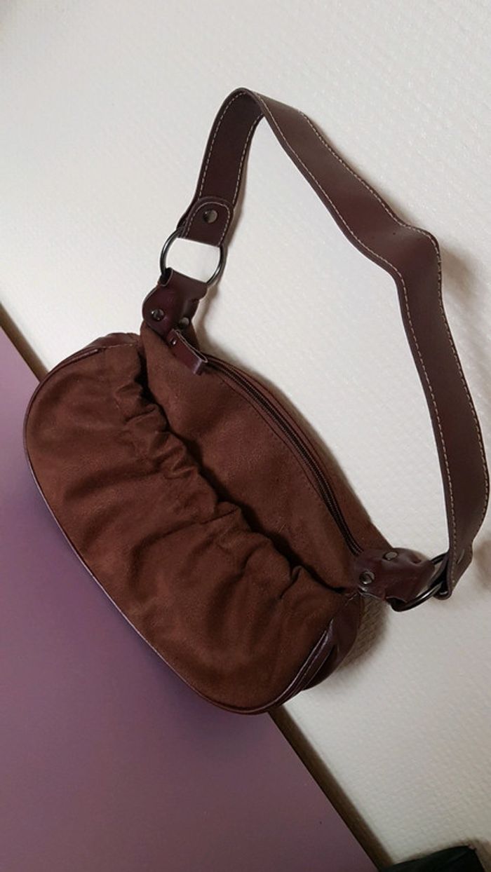 Sac à main Couleur de cet automne Couleur marron Effet daim 2 poches 1 fermeture zip, la 2nde fermeture pression #vidmydresshaut