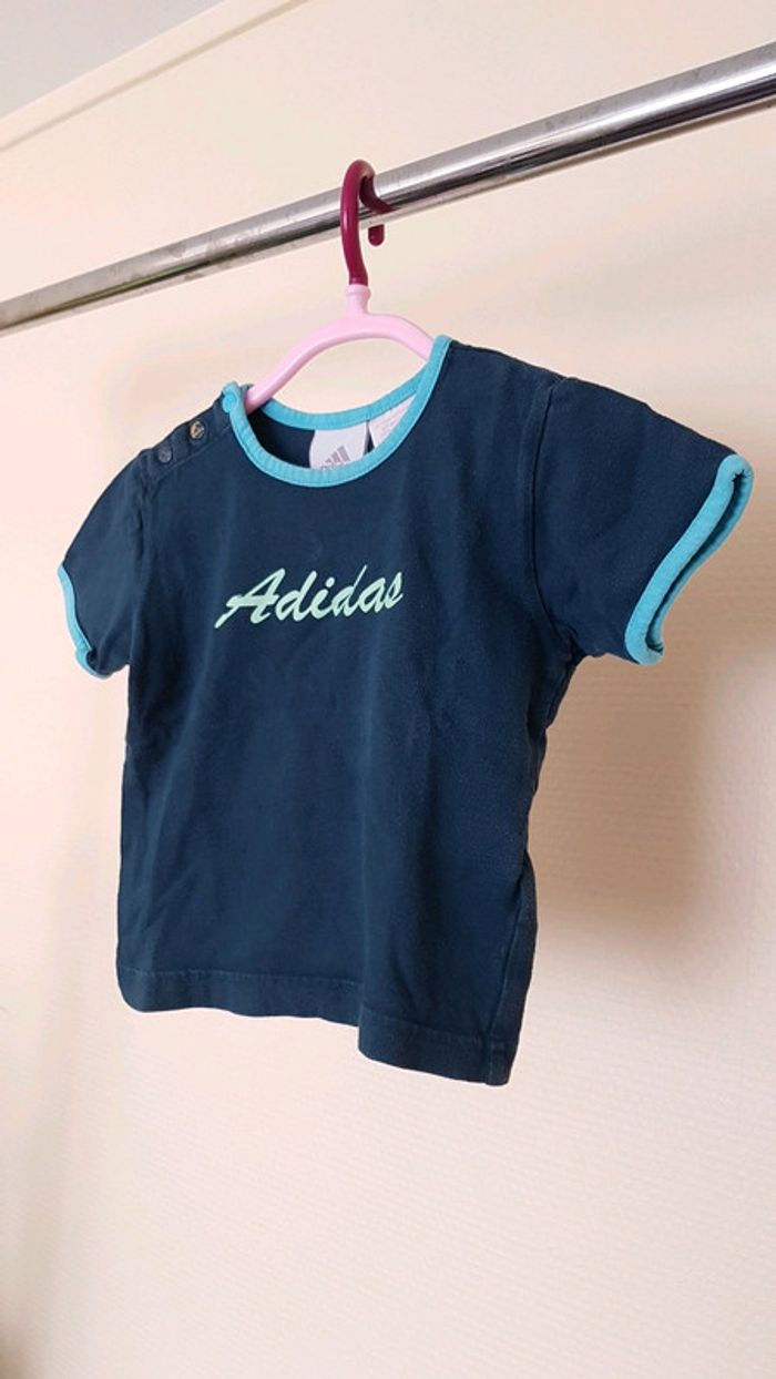 T-shirt Adidas 12 mois 100% coton 3 pressions sur l'épaule Bleu vert et bleu clair #vidmydressboy