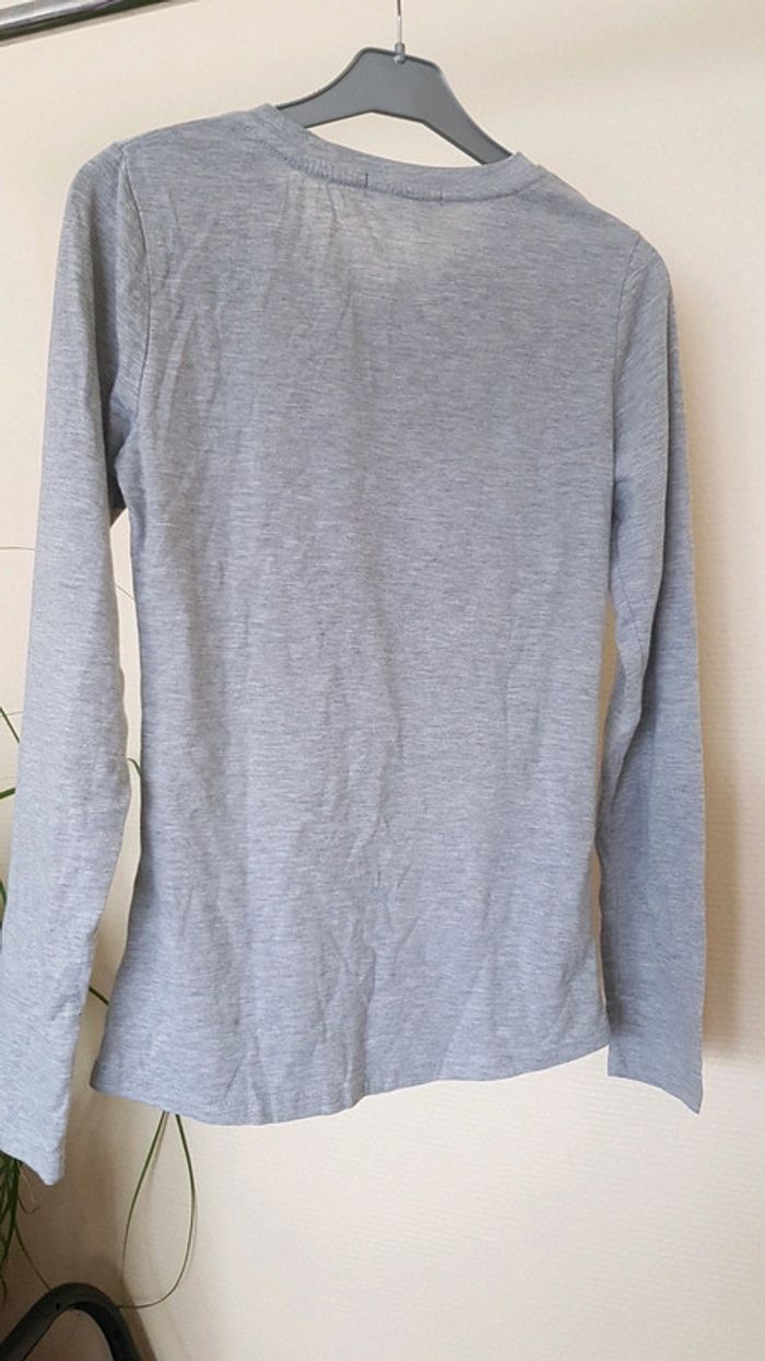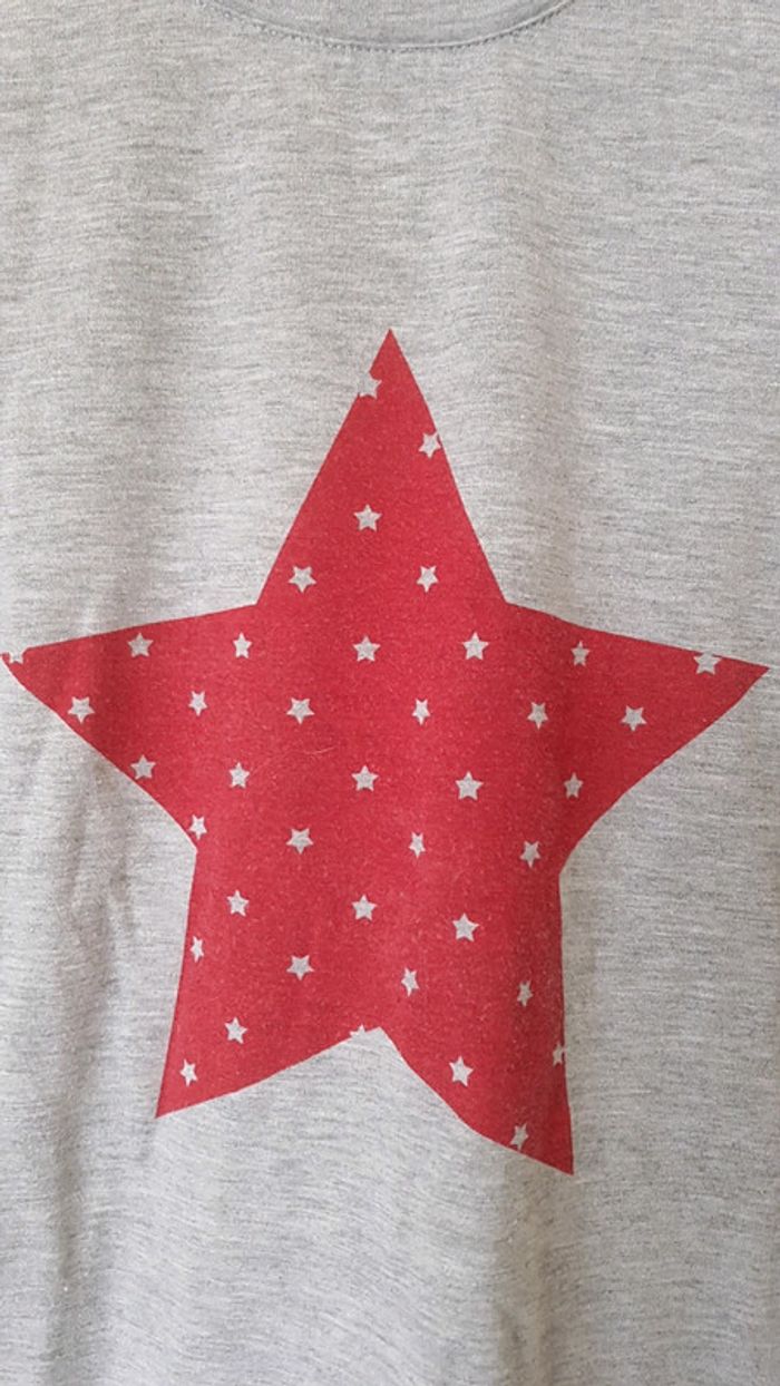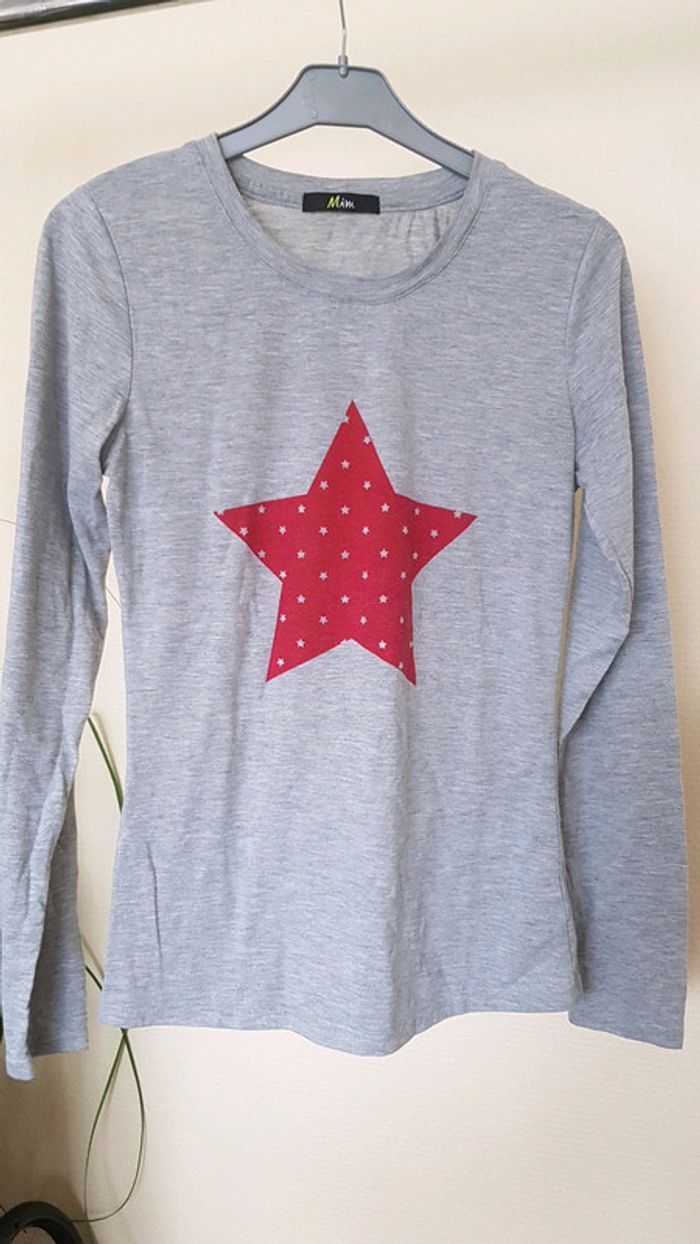 T T-shirt manches longues MIM taille S Motif étoile Gris rouge Jamais porté juste lavé
