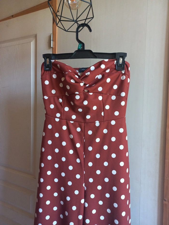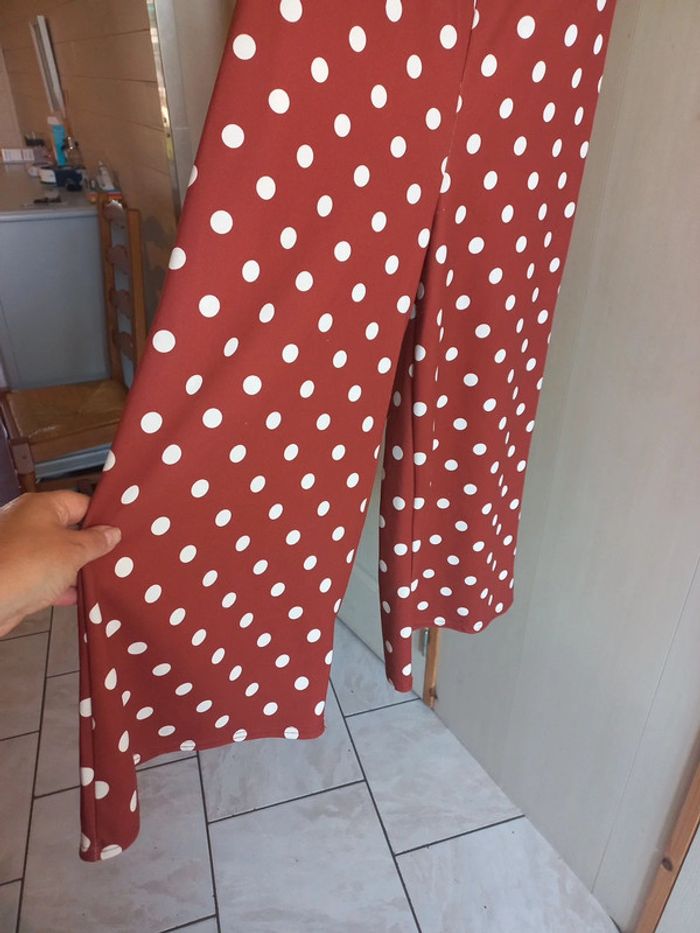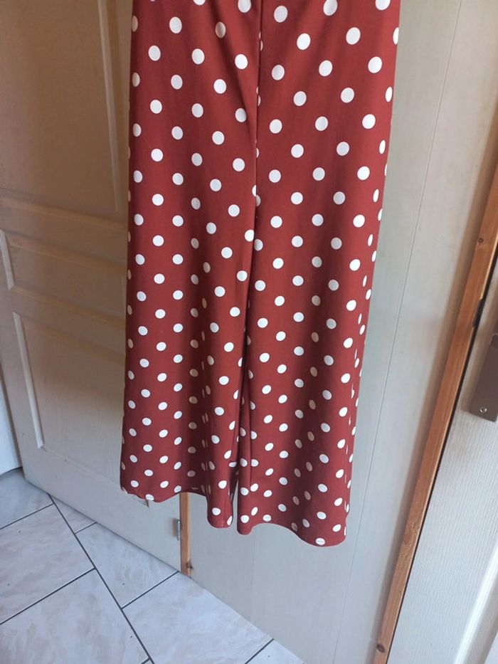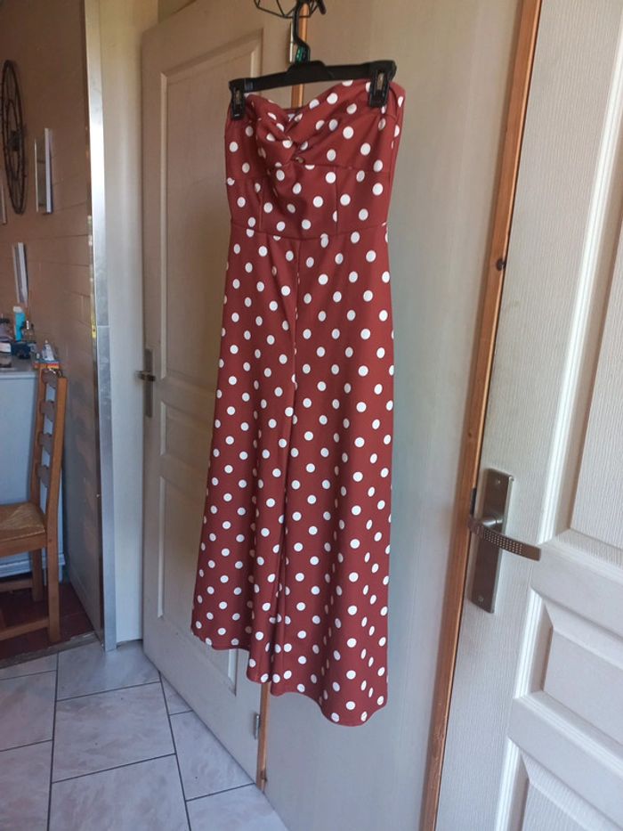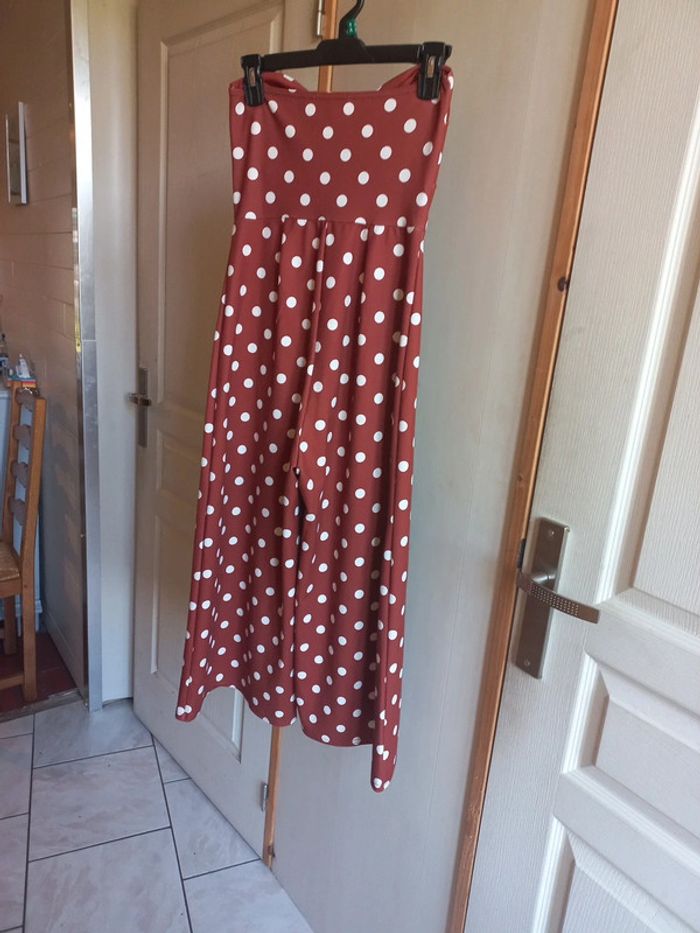 Combinaison bustier Jambes larges Mi longue Marron imprimée rond blanc Taille 36