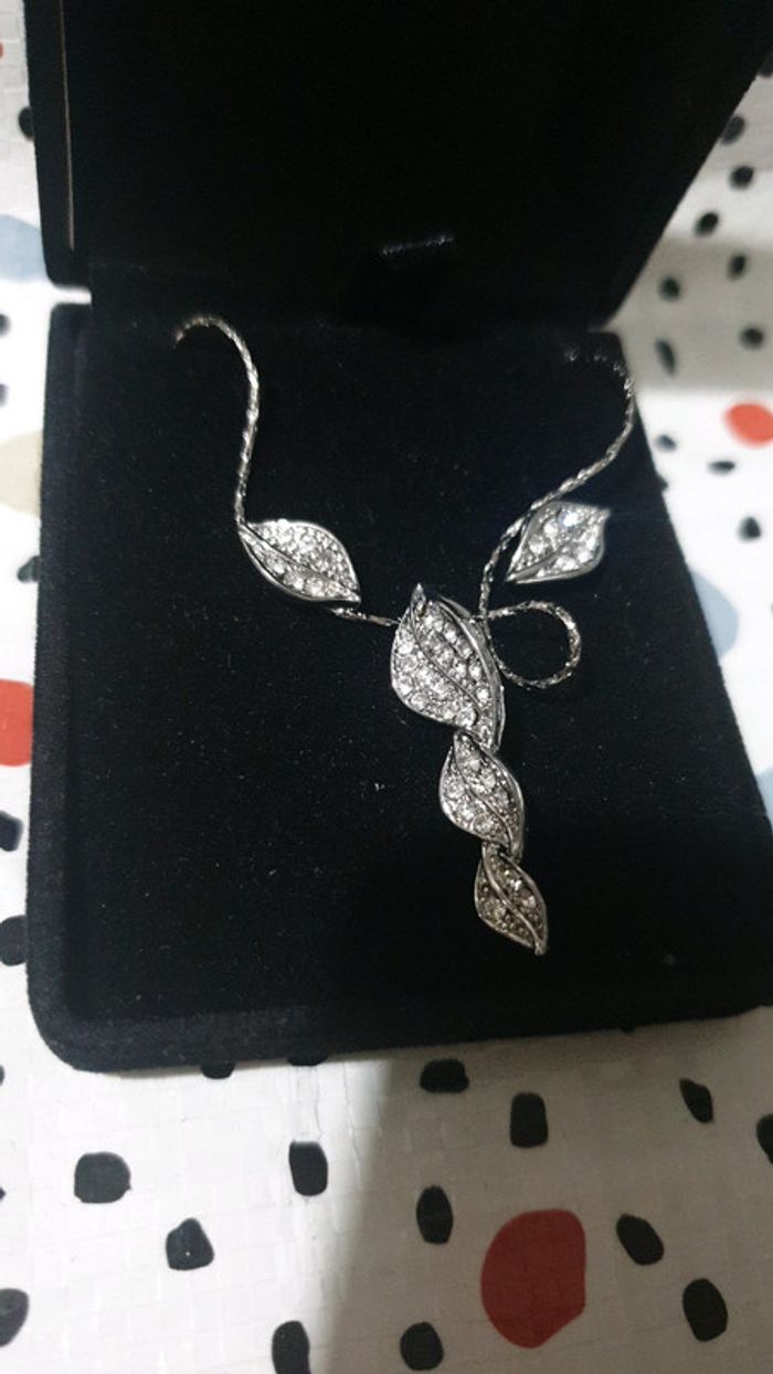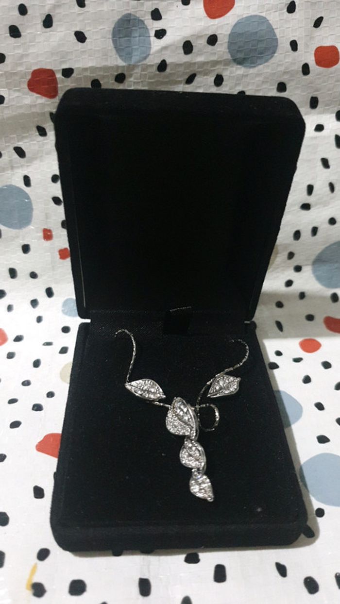 Parure Argent Rhodié Collier + boucle d'oreille (clou) Neuve jamais portée dans son écrin #CollierCeline3240 #BouclesdoreillesCeline3240