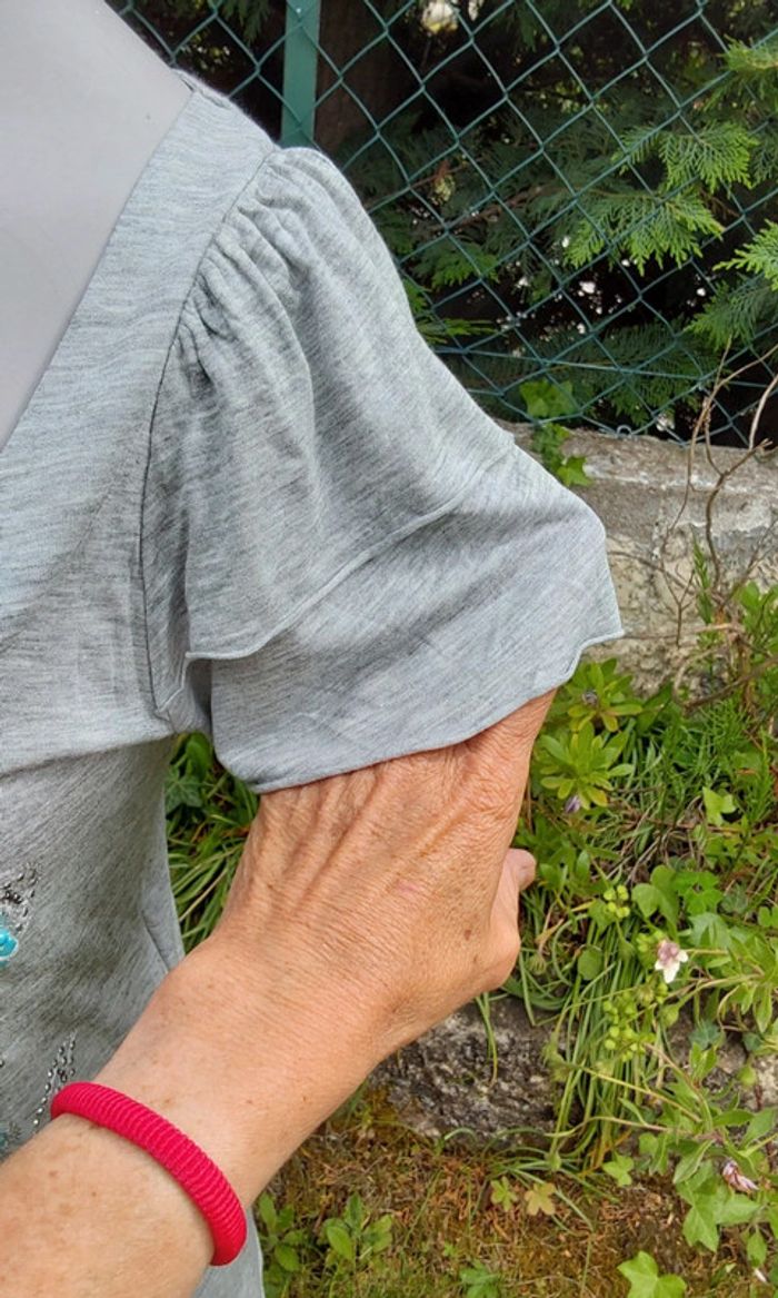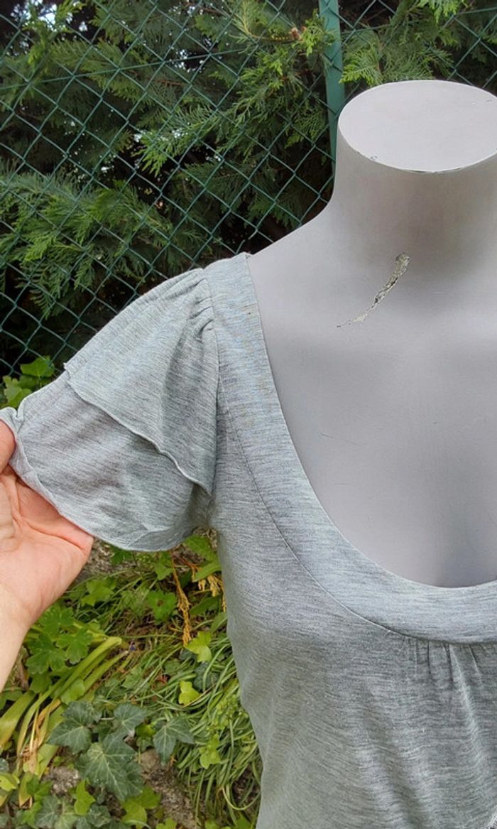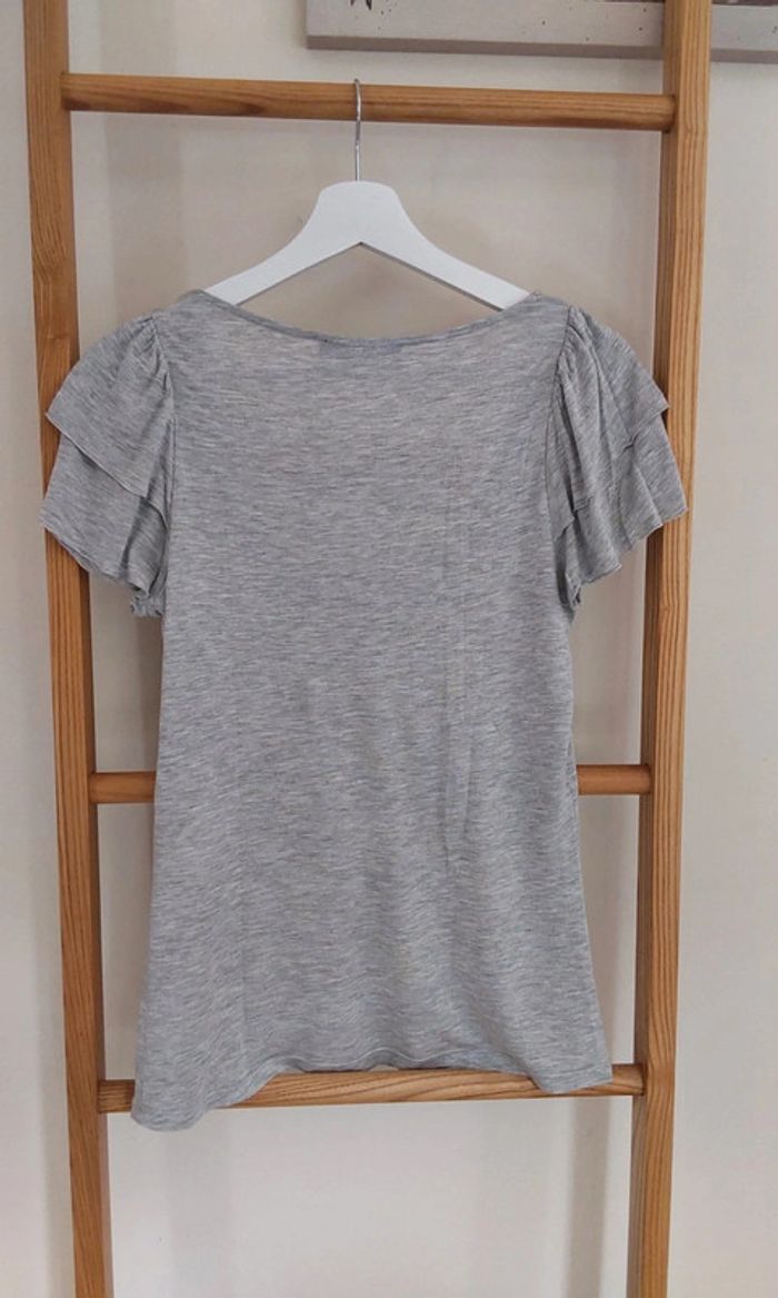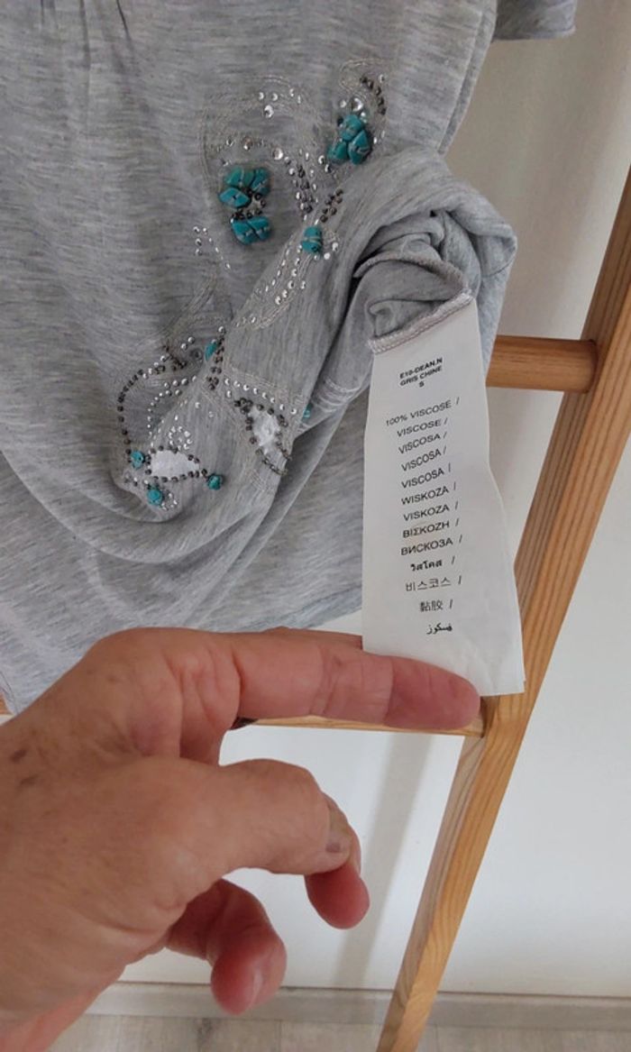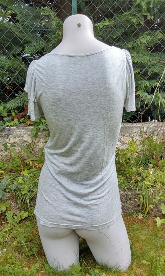Très beau tee shirt décoré d une guirlandes de perles argentées, strass, pierres turquoises,...