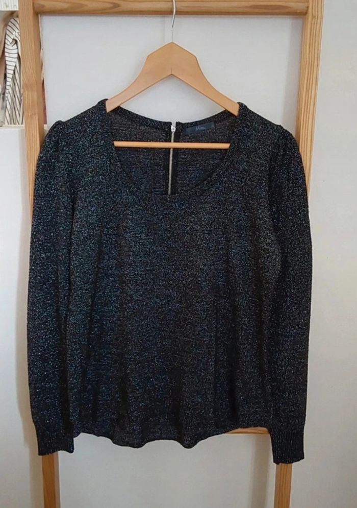 Pull noir fibre métallisées argentées T 38 Pull noir et argenté avec une fermeture éclair dans le dos Aisselles à aisselles 50 cm Longueur 55 cm Coton / Viscose/ fibres métallisées #legrenierdeprovence38
