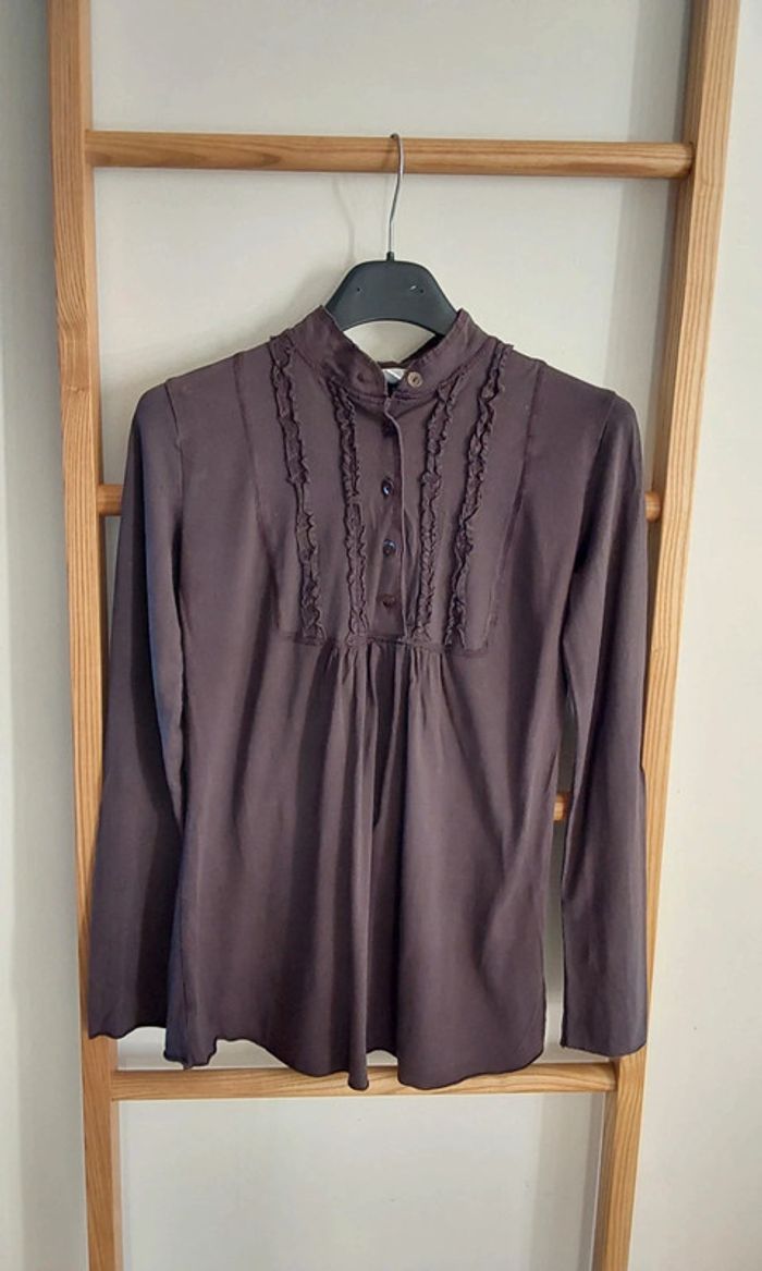 Joli haut marron dans le style cottage, shabby ,country avec ses petits volants chics devant . #legrenierdeprovence36 #blousemarron36 #fairycore #coppenhagen #cottagecore