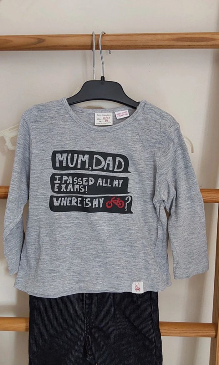 Ensemble salopette  Orchestra velour et tee shirt manches longues Zara boys 12/18 mois 81 cm - photo numéro 2