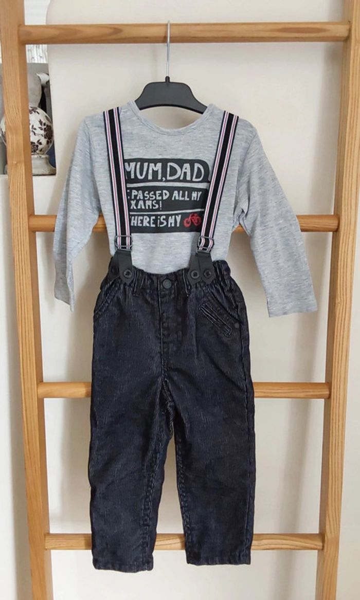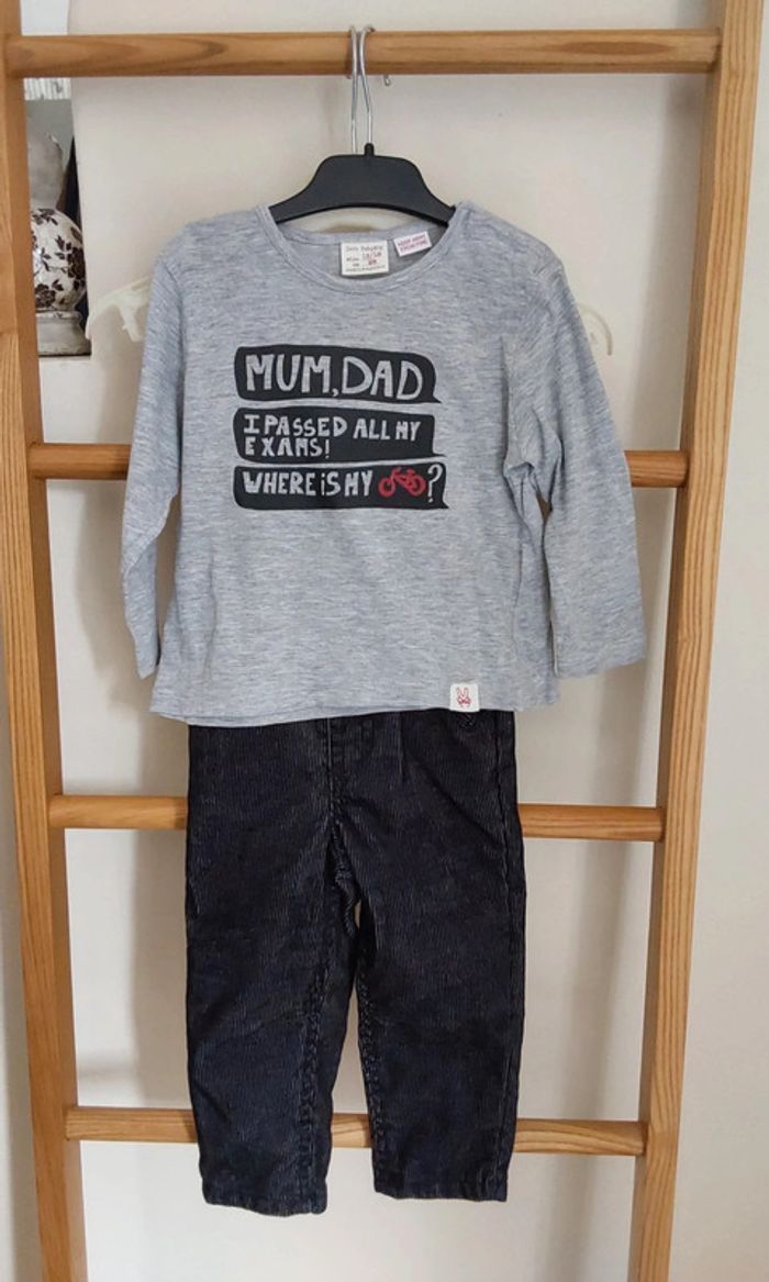 Ensemble salopette Orchestra velour et tee shirt manches longues Zara boys 12/18 mois 81 cm
