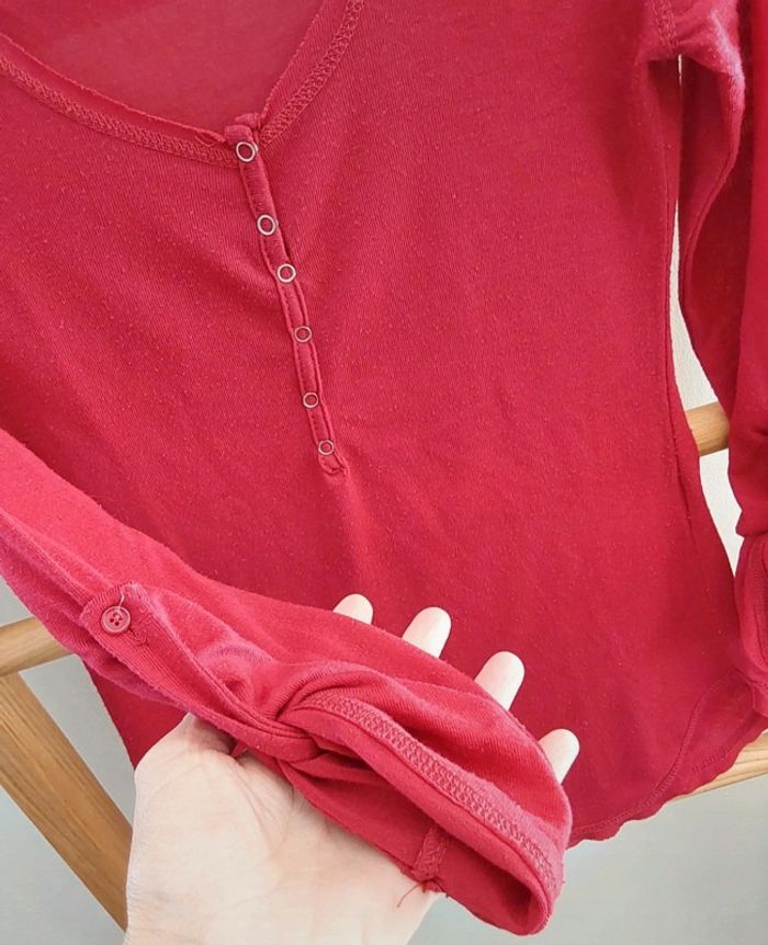 Haut rouge Vintage Dressing T 36 Haut rouge manches ajustables Boutons pressions à l encolure Polyester, viscose et élasthane Taille 36 J ai aussi un blanc et un corail dans mon dressing ..... Pour la suite .... #legrenierdeprovence36 #vintage ##vintagedressing #blouserouge36 #hautrouge36