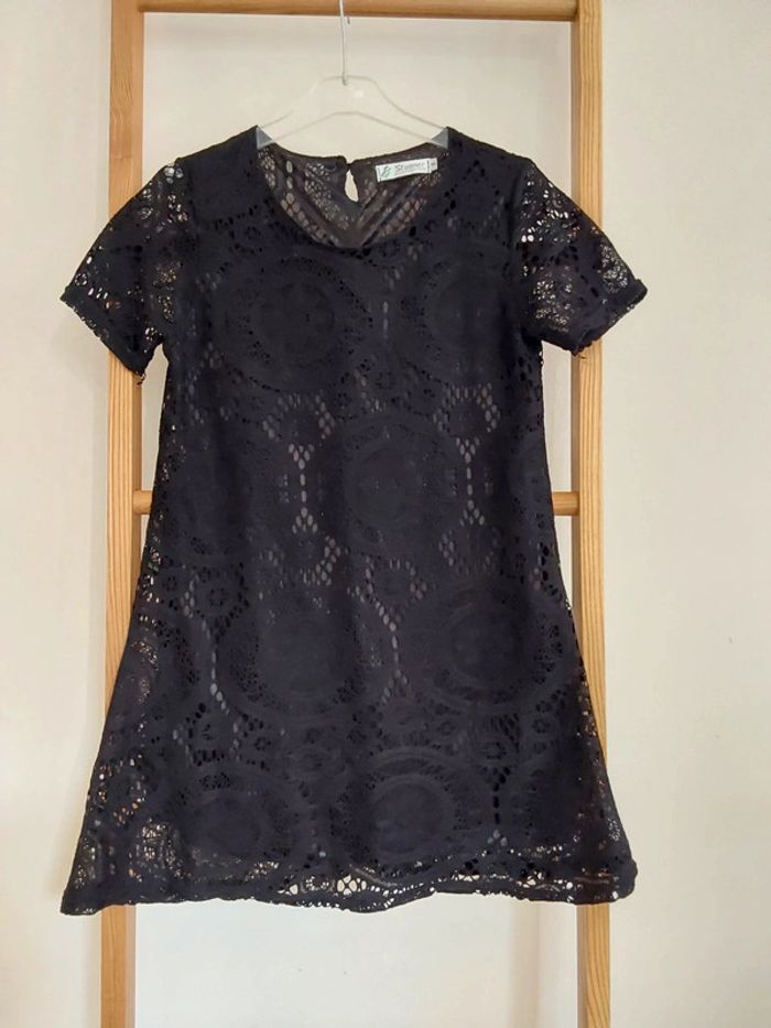 Robe en dentelle noire et satin T 36 - photo numéro 1