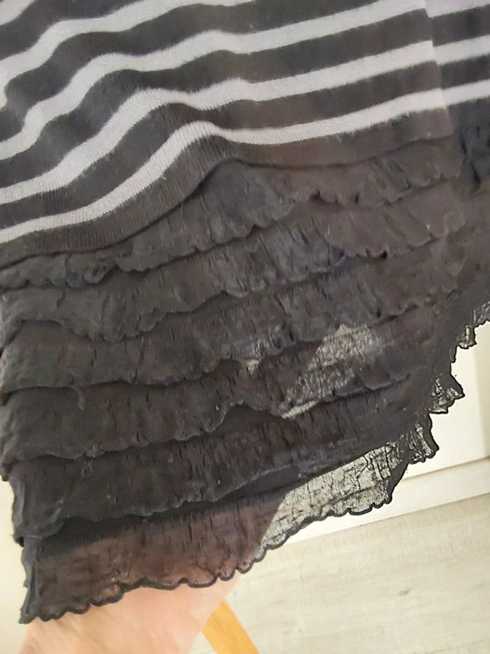 Robe noire rayée beige volant dentelle noire T 38 - photo numéro 10