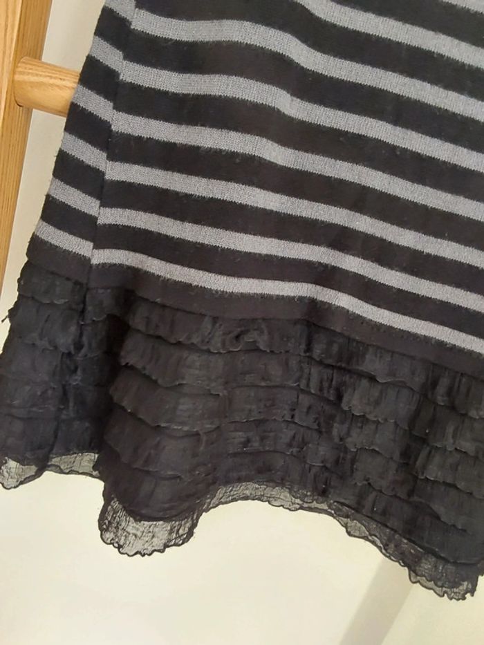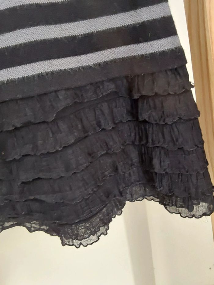 Robe noire rayée beige volant dentelle noire T 38 - photo numéro 6