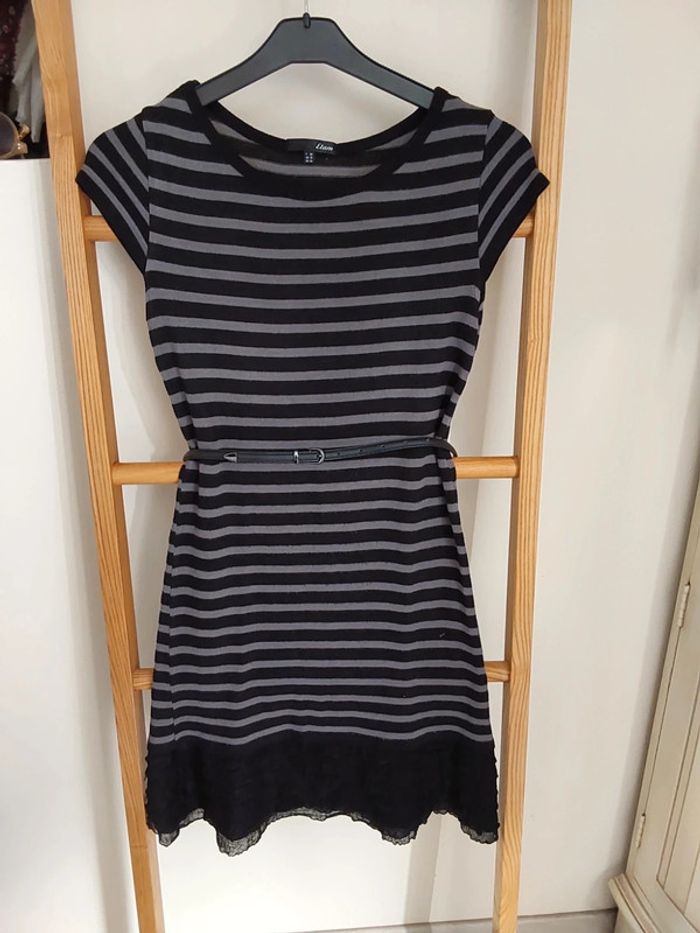 Robe noire rayée beige volant dentelle noire T 38 - photo numéro 1