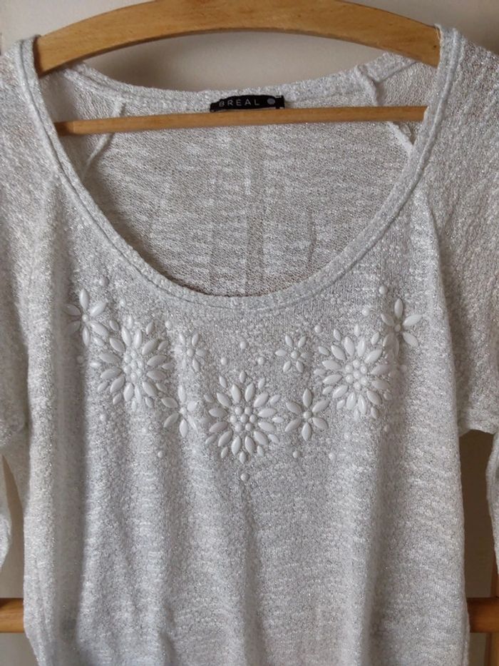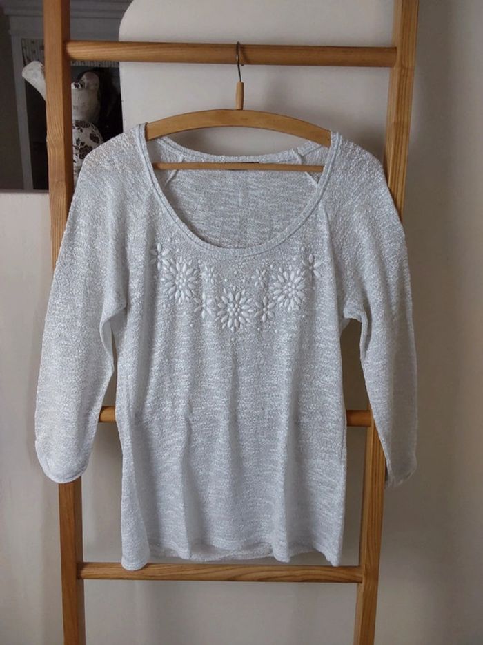 Pull  habillé  chic blanc argenté Patrice Breal T 38 - photo numéro 3