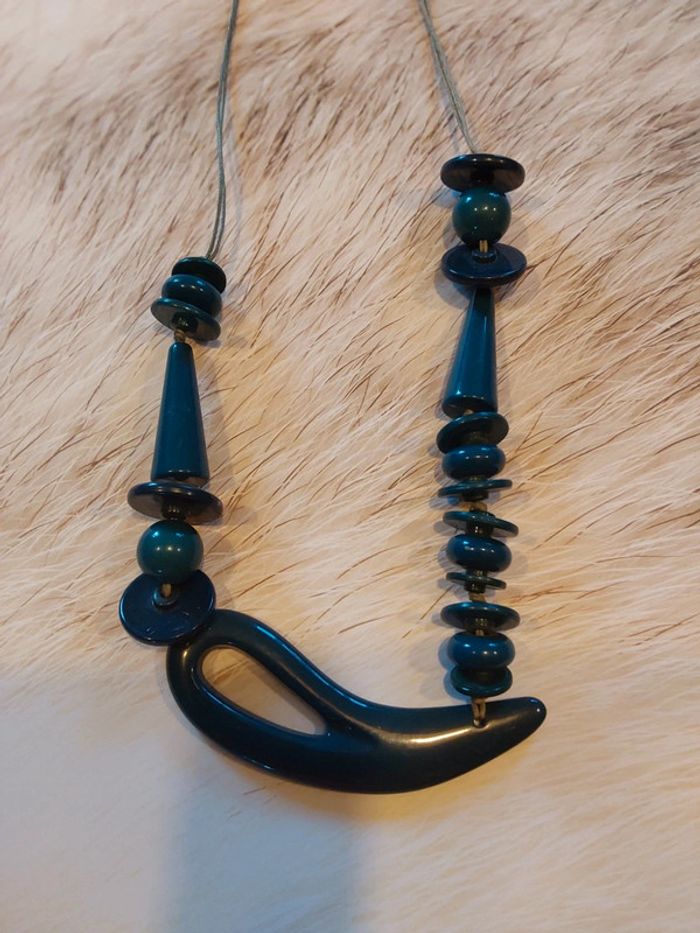 Sautoir neuf bleu canard perles rétro vintage année 70' - photo numéro 1
